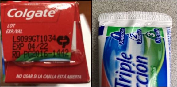 Además, se identificó otro lote falso en Costa Rica, según confirmó la empresa Colgate Palmolive, para el producto Colgate Doble Frescura de 50 ml y 75 ml. Se trata del lote L9099GT1025 con fecha de expiración 04/22 (en la caja).
