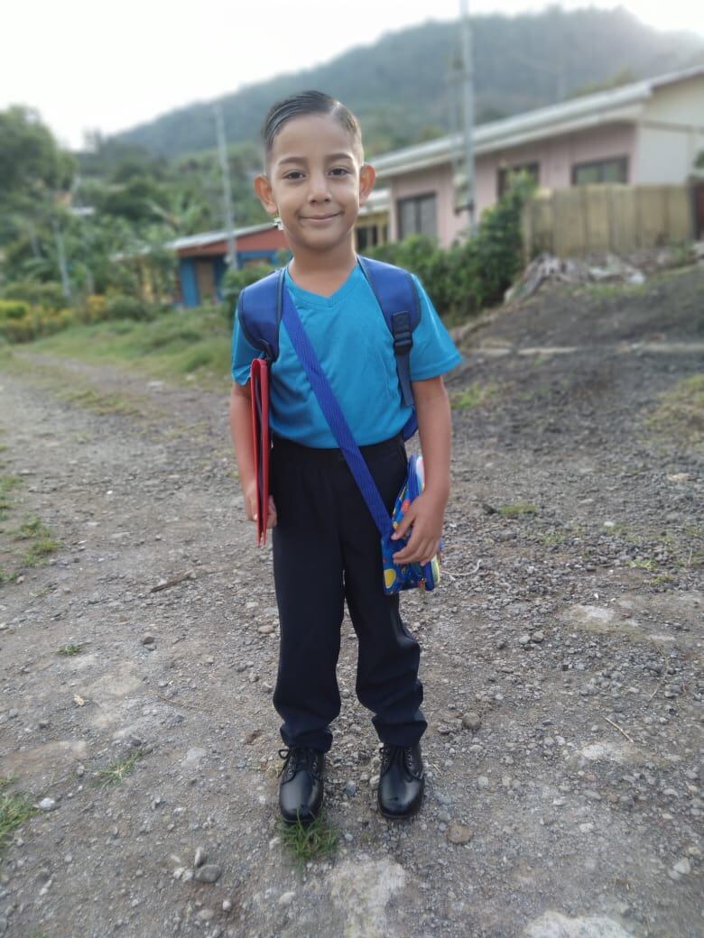 Ahorita Thiago está en el kinder, pero sueña con entrar a la escuela para ponerse el uniforme blanco con azul que tanto le llama la atención.