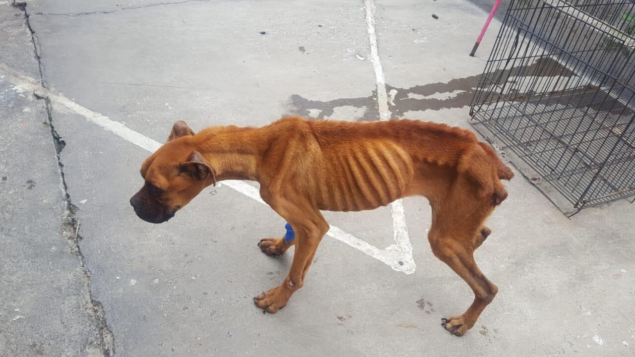 “De la desnutrición no podía andar, un policía la alzó para subirla al carro. Le echaron agua porque estaba llena de hormigas, tenía pulgas y garrapatas. También tenía una llaga en un muslo. La pesaron y estaba en diez kilos y un bóxer en promedio pesa de 20 a 25 kilos”, dijo.