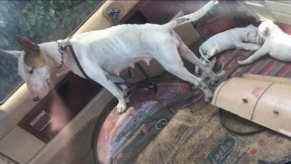 Una perra y sus cinco cachorros de raza American Stafford conocieron de primera mano la crueldad humana al vivir encerrados dentro de un carro, sin ventilación, sin agua y bajo el riesgo de sufrir un golpe de calor por las altas temperaturas.
