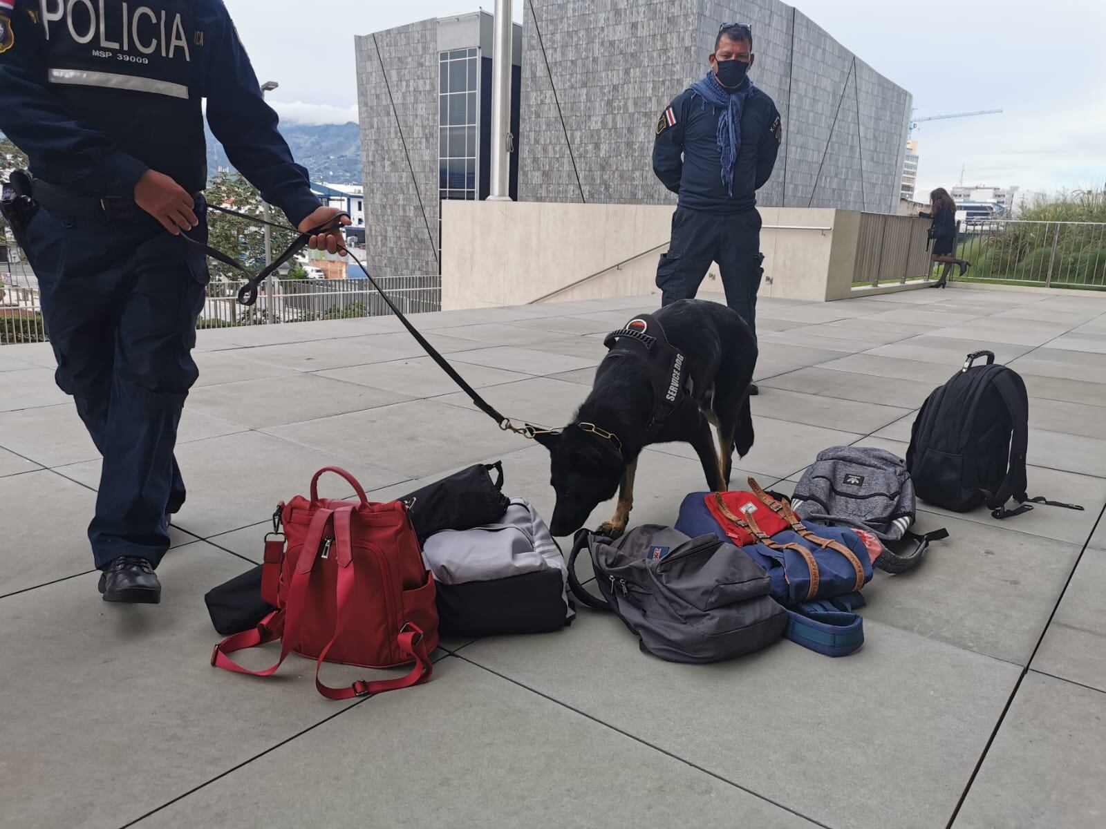 Indor, un perro de la Unidad Canina del Ministerio de Seguridad Pública, dio el visto bueno para que se llevara a cabo la sesión solemne del 1 de mayo en la Asamblea Legislativa.