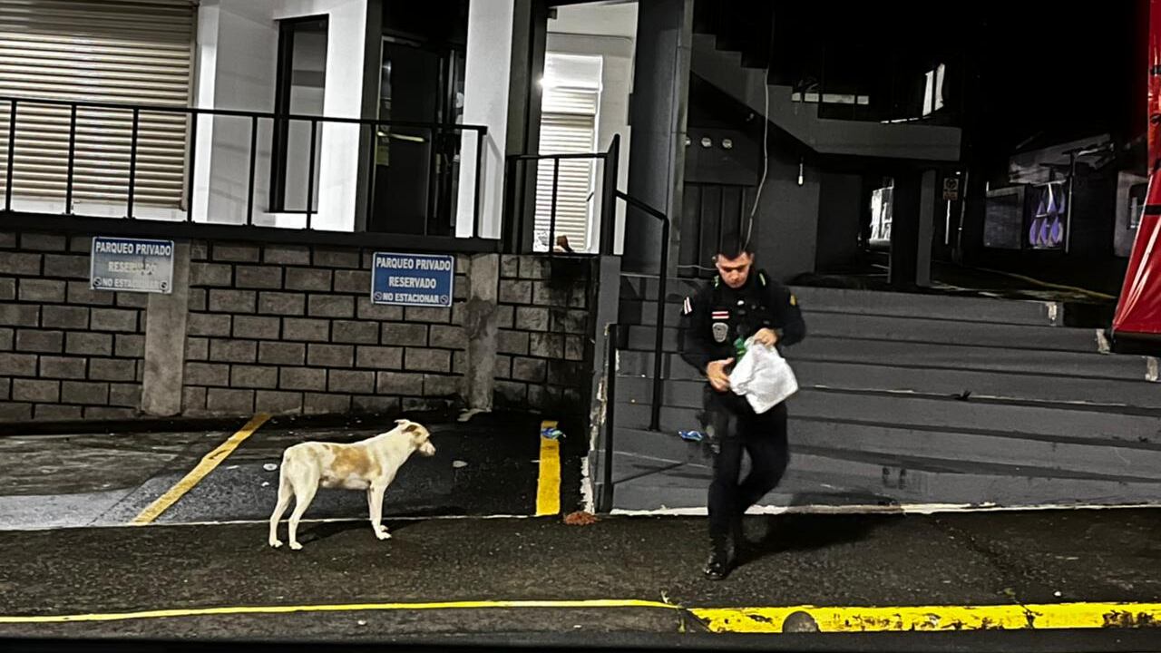 El policía Bryan Cruz Zúñiga tiene un corazón tan grande que cada vez que sale a un recorrido en patrulla lleva una bolsa de alimento para darles a los perritos callejeros que se encuentre.