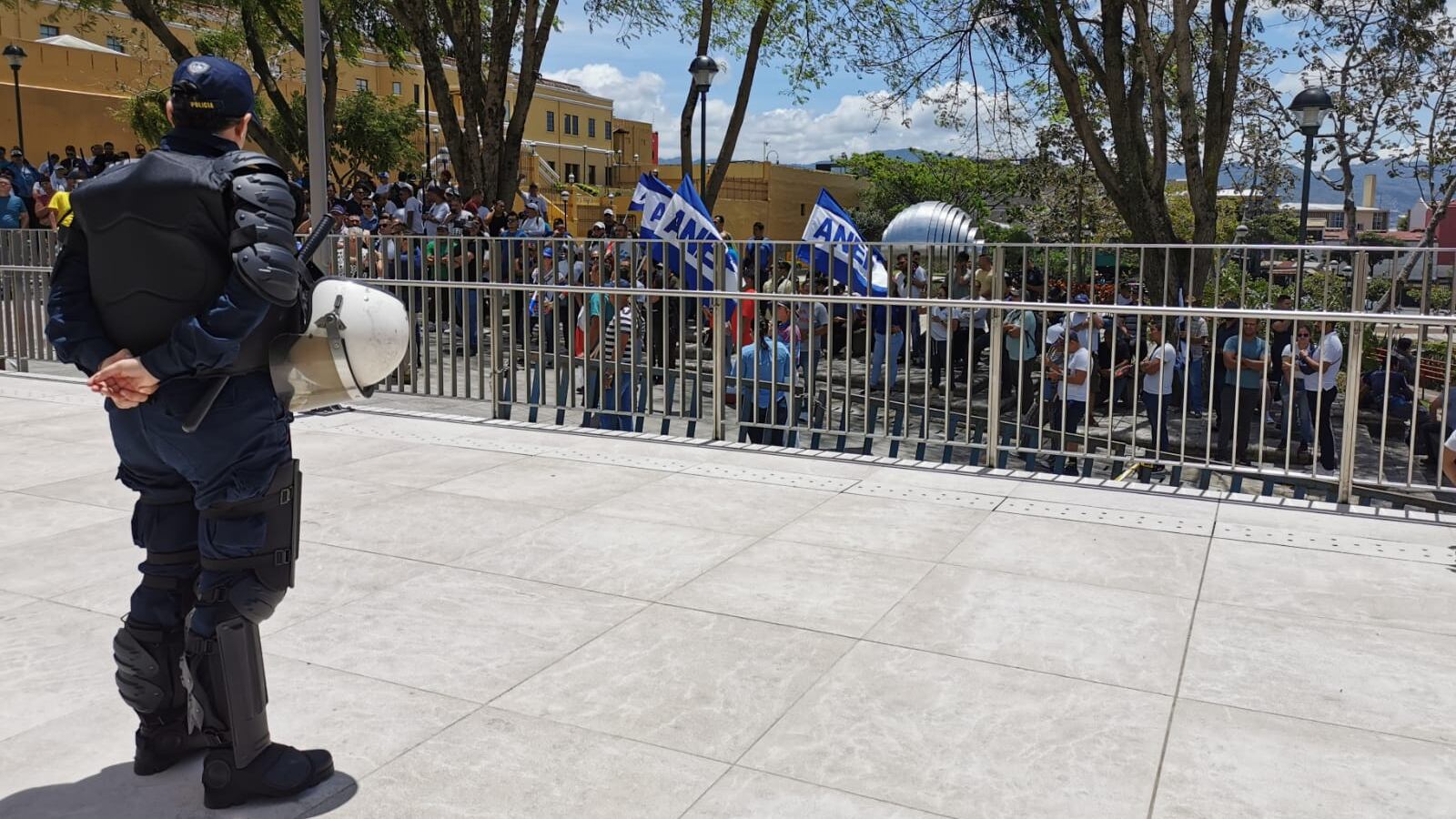 Él fue uno de los policías que participó en la marcha que se llevó a cabo este martes 21 de marzo en San José y llegó a la Asamblea Legislativa.