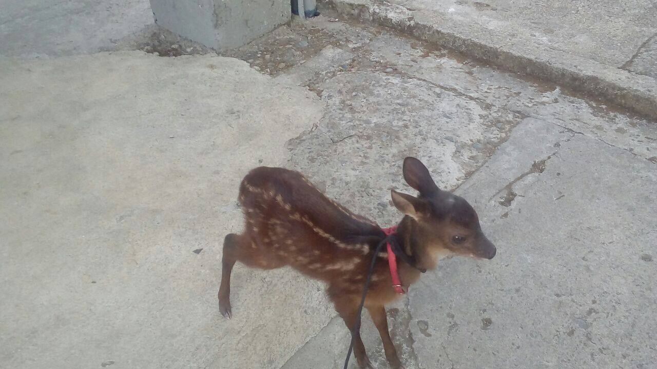 El venado se tranquilizó cuando los uniformados se acercaron, según el Facebook de la Fuerza Pública, por lo que procedieron a retirarlo del lugar donde lo tenían en cautiverio.
