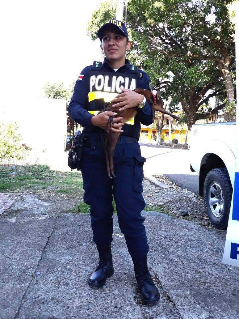 La mañana de este lunes la Fuerza Pública compartió una seguidilla de fotos del rescate de un venado cola blanca que se encontraba amarrado en el sector de Palmar Norte, Osa.