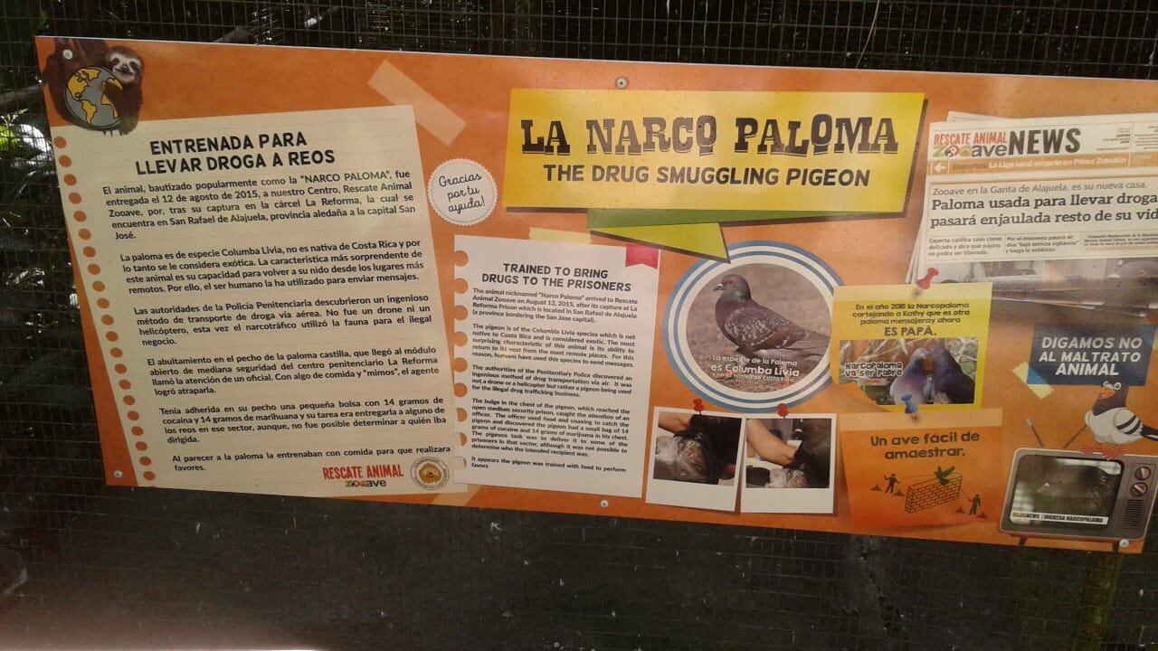 “Tenemos otros animales exóticos y muy lindos, pero el tucán y la narcopaloma están en un mano a mano en popularidad. Es raro que alguien venga y no quiera saber de ellos. En el caso de la paloma, preguntan cosillas como que si los pichones son igual de bandidos”, dijo Sibaja.