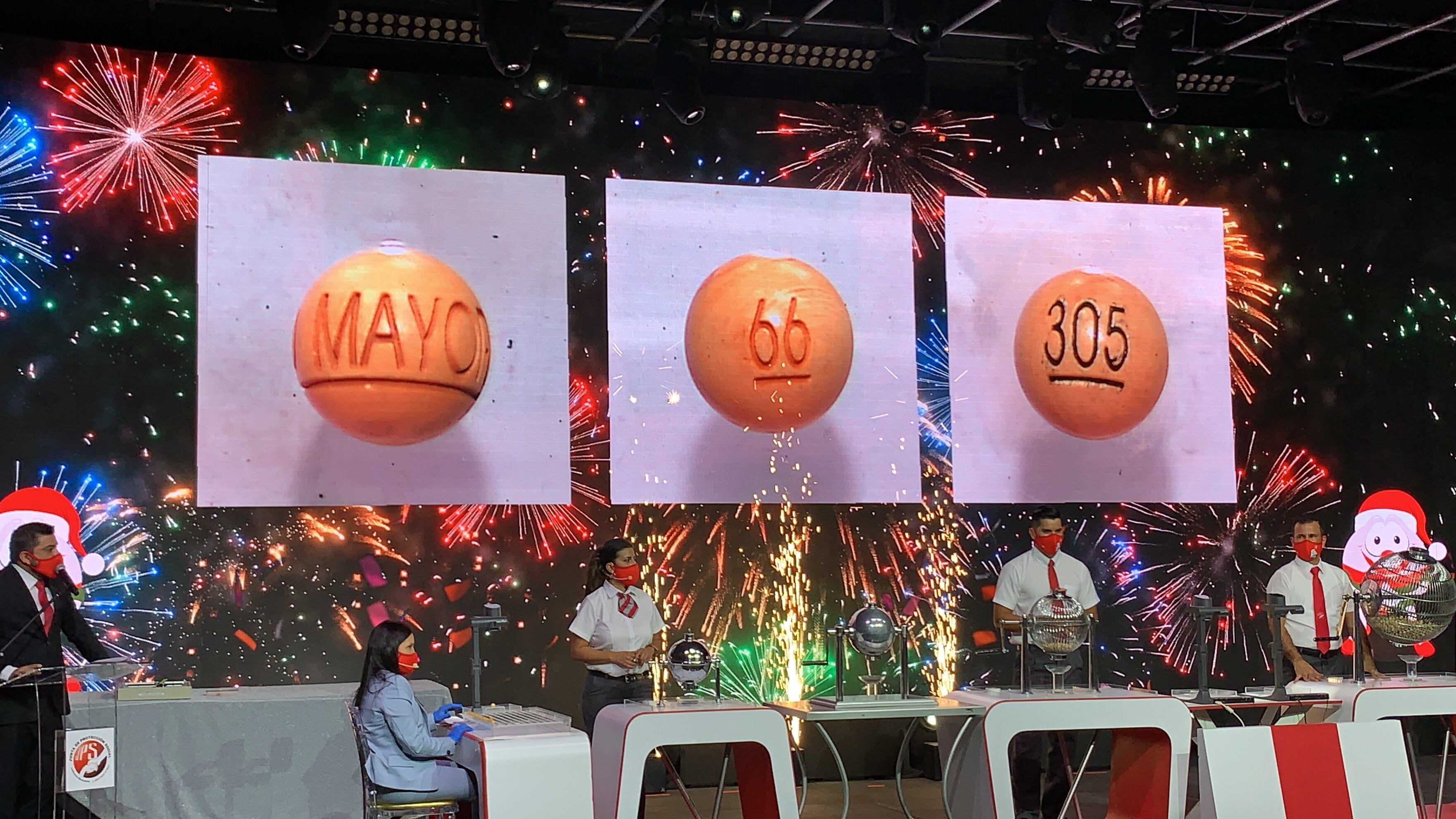 El Gordo Navideño fue el número 66 con la serie 305. Salió a las 7:42 de la noche, justo cuando el sorteo navideño llevaba 6 minutos de haber iniciado.