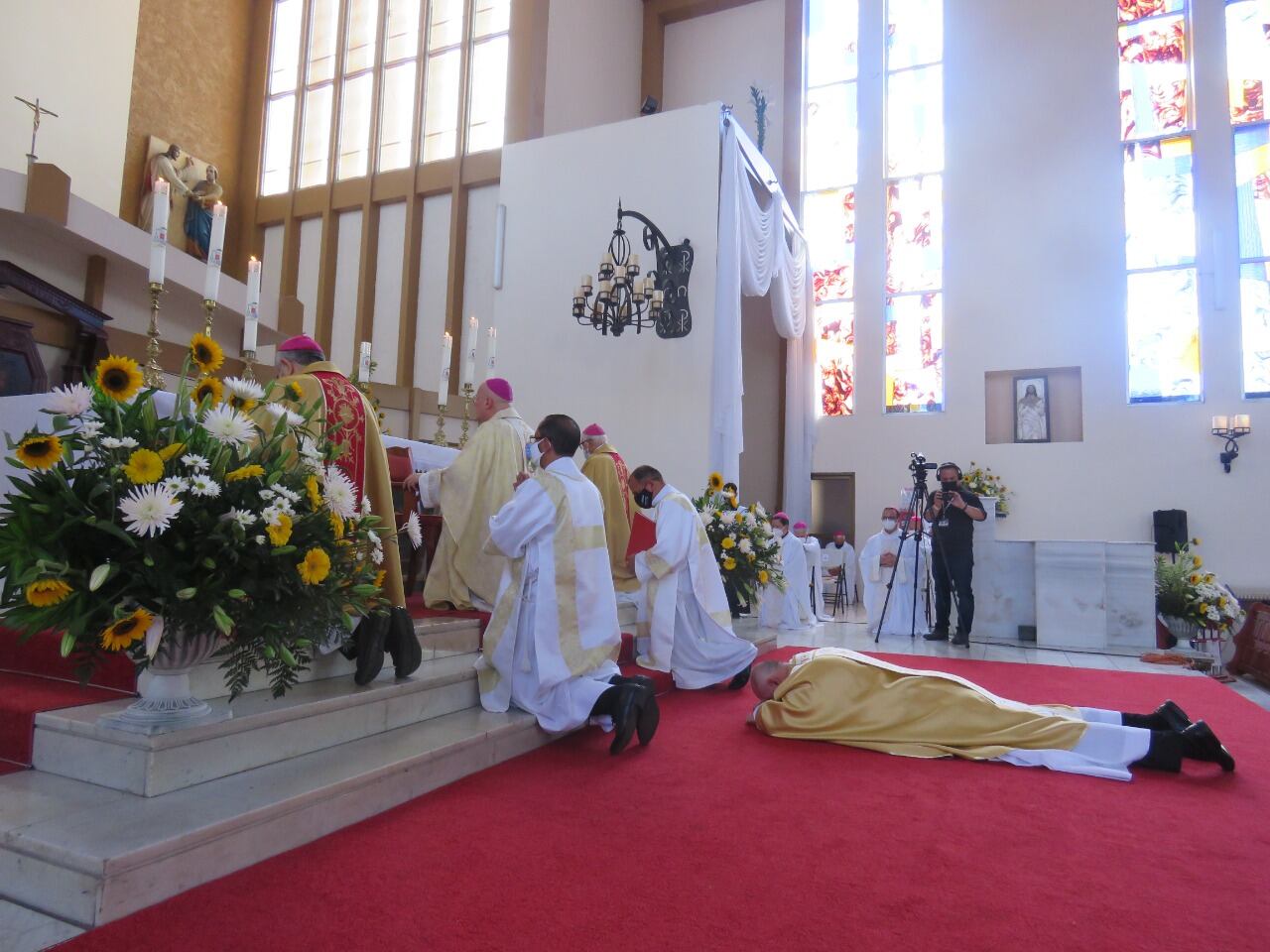 A las 11 a.m., en punto, monseñor Castro se acostó boca abajo frente al altar como signo de su entrega total a Dios y a su nuevo episcopado.