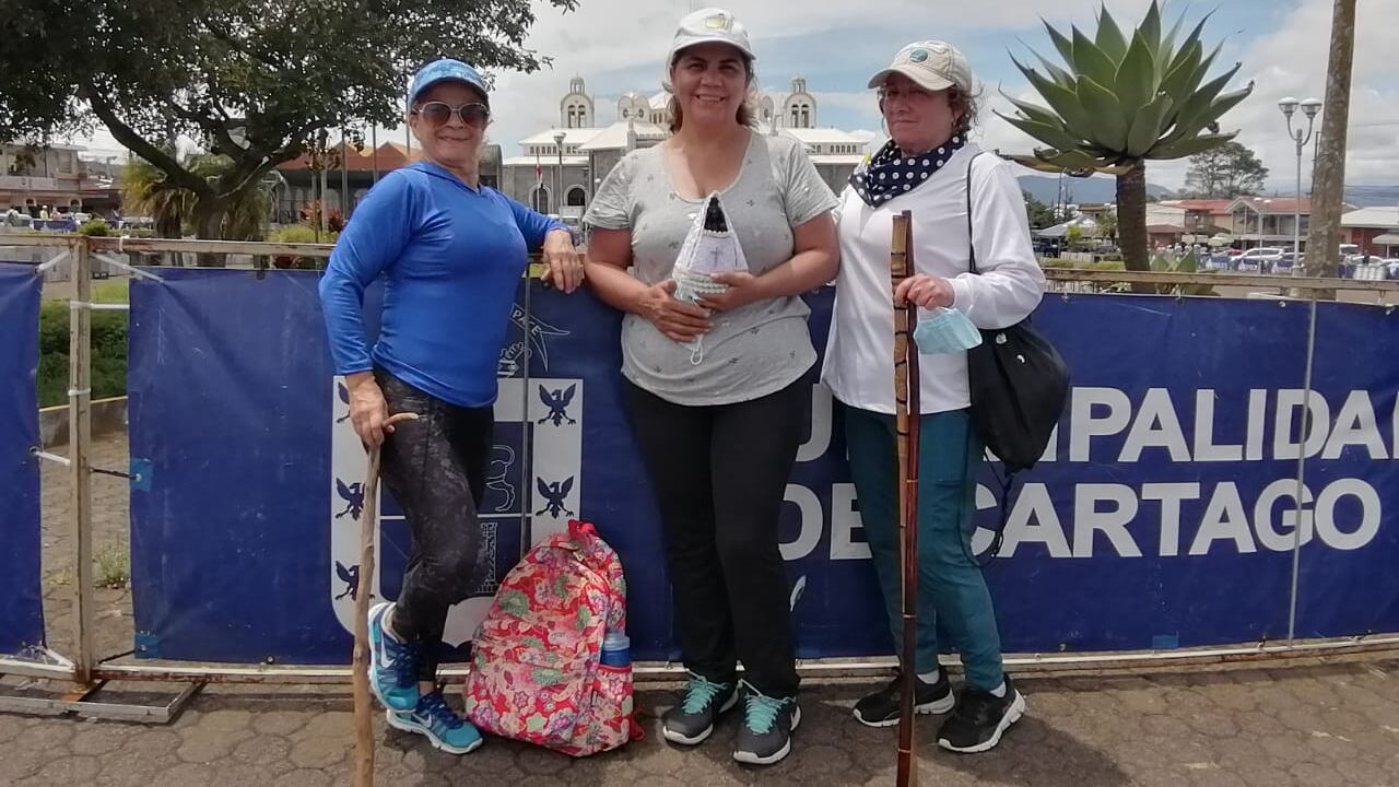 Las primas Gladys Jiménez, Rosalía Molina y Nelsy Valverde salieron este sábado a las 5 a. m. de La Lumbre de Corralillo de Cartago para ir a pagarle favores a la virgencita de Los Ángeles.