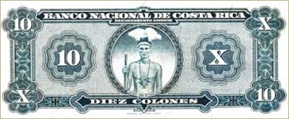 Otro billete con una curiosidad muy llamativa es el de diez pesos, que en la parte de atrás tiene la imagen del último cacique de Costa Rica, Antonio Saldaña, pero en la foto que usan, pusieron a Guillermo Gabb, quien se presume fue su asesino, pequeña gran pifia.