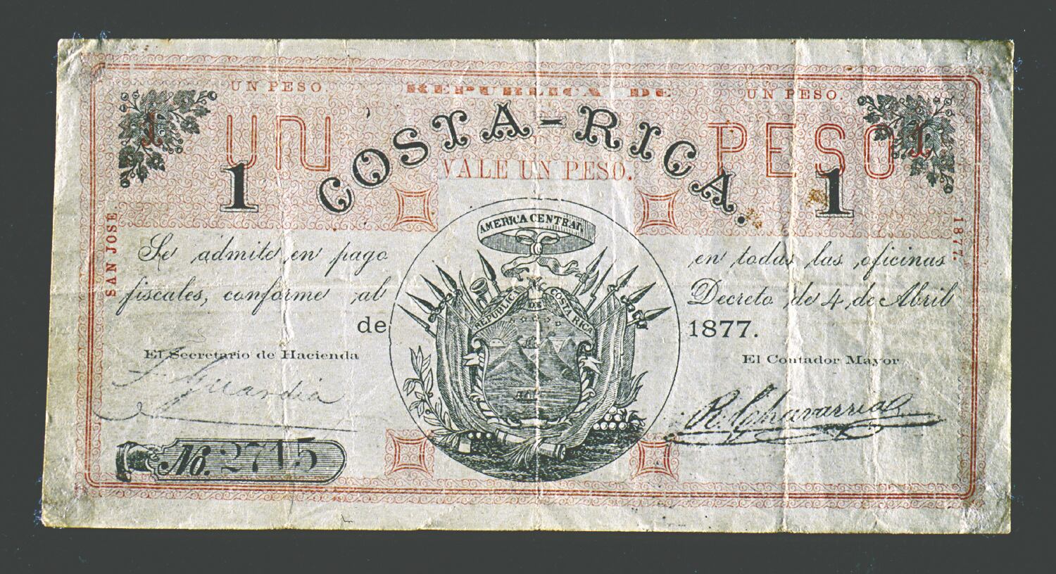 Emitieron billetes de uno, dos, cinco, diez y 20 pesos, que era como se llamaba la moneda tica de entonces, pero esas cantidades eran como decir los billetes de 20 mil actuales, que lo que permitían era aliviarle literalmente la carga por el peso de andar tantas monedas de oro y plata en la bolsa.