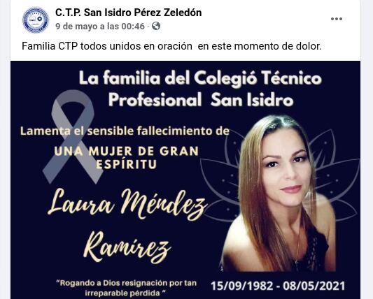 El 30 de abril fue el último día que Laura trabajó en el Colegio Técnico Profesional de San Isidro de Pérez Zeledón, ya que ese día empezó su licencia.