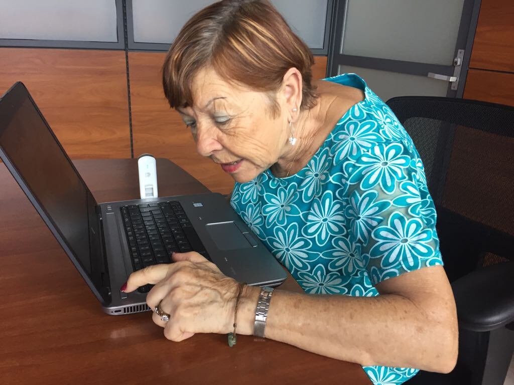 Ella tiene a cargo un hijo con discapacidad de 54 años, por lo que para ella, tener una computadora y acceso a Internet le permite mantenerse en contacto con sus familiares.
