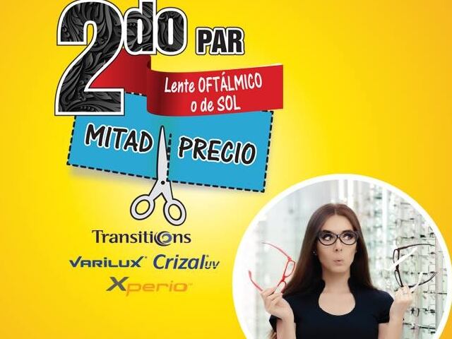 Se trata de la promoción “2do par de lentes a mitad de precio” , con la que podrá llevarse podrá llevarse lentes: Crizal, Transitions, Varilux o Xperio, los cuales son unos chuzos.