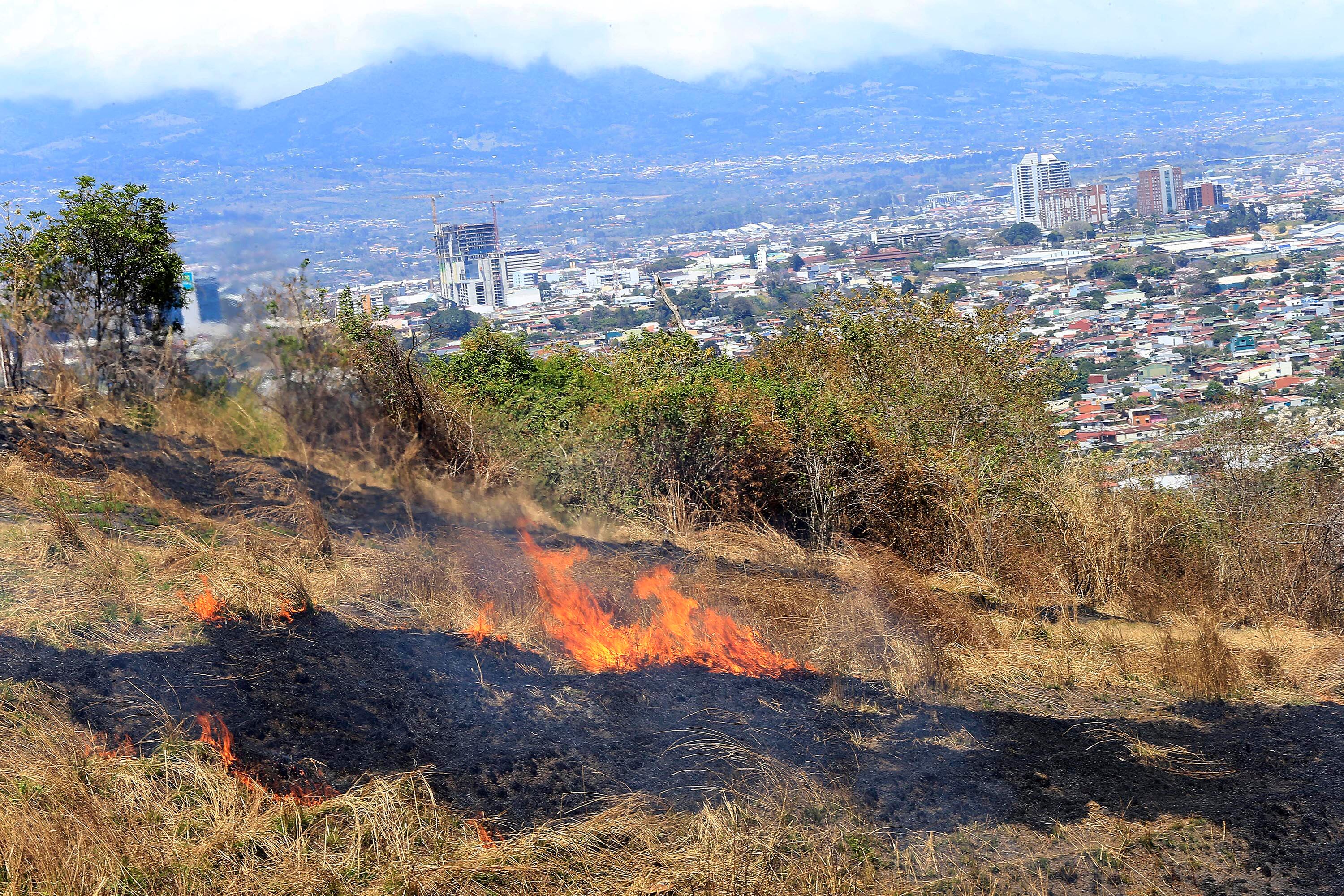 El volcán Poás está enamando gases y ceniza, además, en zonas como Liberia se reportan constantes quemas de charrales que producen grandes cantidades de humo, algo que se repite en otros lugares como Cartago.