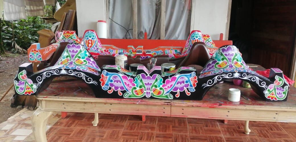 “Mi esposo es boyero, carpintero, hace carretas y yugos. Su hermana era la que le pintaba, pero como es asmática el olor la afectaba y dejó de hacerlo. Él fue el que me dijo que por qué no le ayudaba, le puse peros al inicio, porque tenía mucho tiempo de no hacerlo y no me habían enseñado a hacer el dibujo, pero ¡diay! me tocó acordarme de lo que vi y empecé a hacerme los moldes míos y así empecé a hacer los dibujitos, al principio no me quedaban muy bonitos y poco a poco he mejorado y cambiado colores”, dice la joven artista.