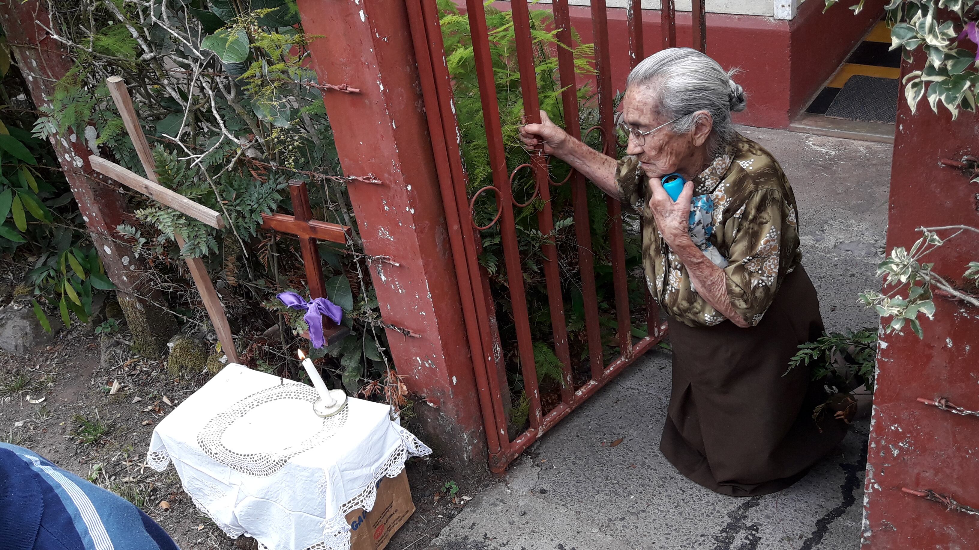 Doña Nelly Vargas ya con más de 95 años, es una de las pioneras de esta procesión, en la cual ya no puede hacer el recorrido debido a su edad, es por eso que la ultima estación está frente a su casa, donde ella la espera con fe y devoción, todo para agradecerle Aquel que es nuestro salvador.