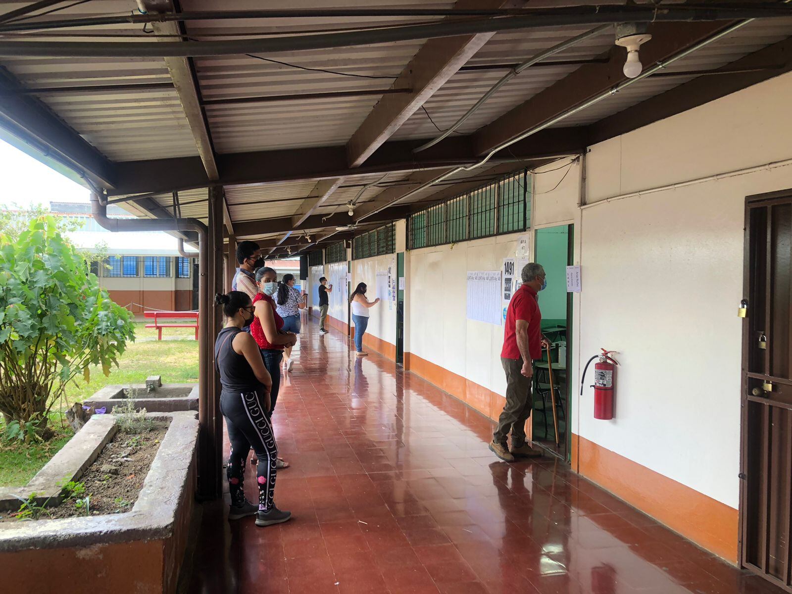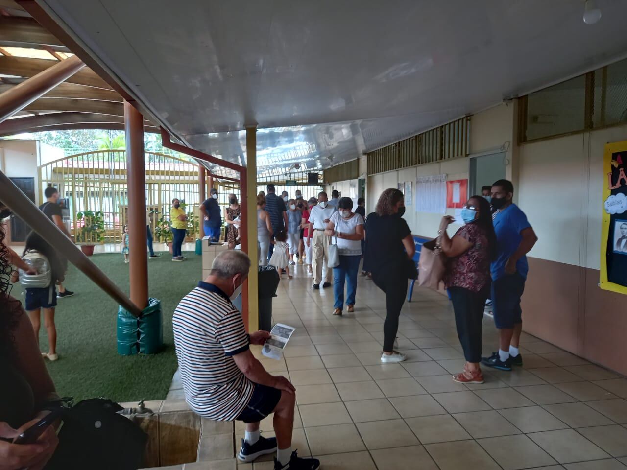 En la escuela Pacto del Jocote en Alajuela, en horas de la mañana, hubo un ambiente tranquilo, con las personas participando del proceso de forma respetuosa. En el centro de votación había juntas receptoras con filas de tres o cuatro personas y otras que no tenían a nadie esperando.