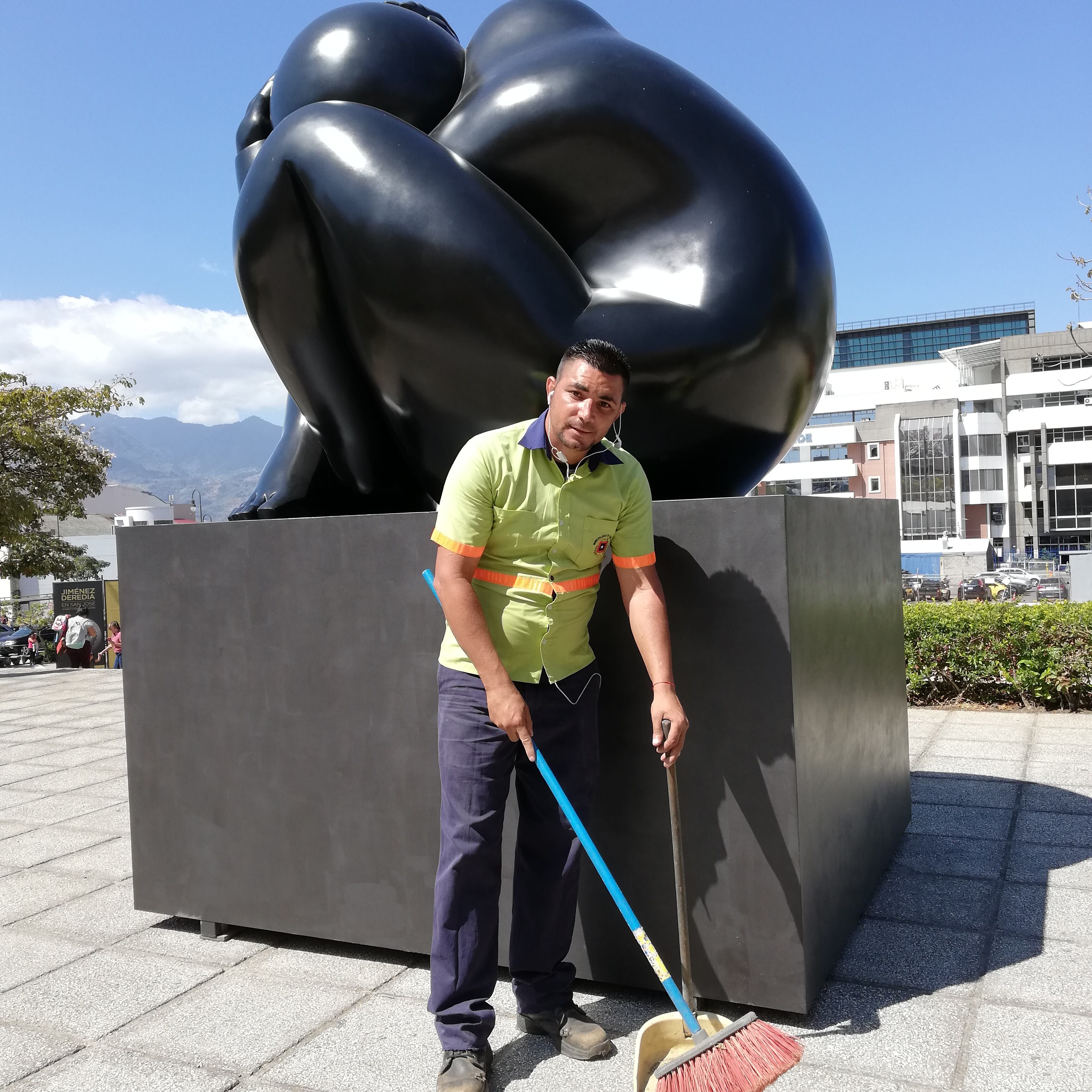 Cristian Alvarado es un recolector de basura que admira al escultor Jorge Jiménez Deredia que, por esas casualidades de la vida, le tocó disfrutar y sufrir las obras de este artista.