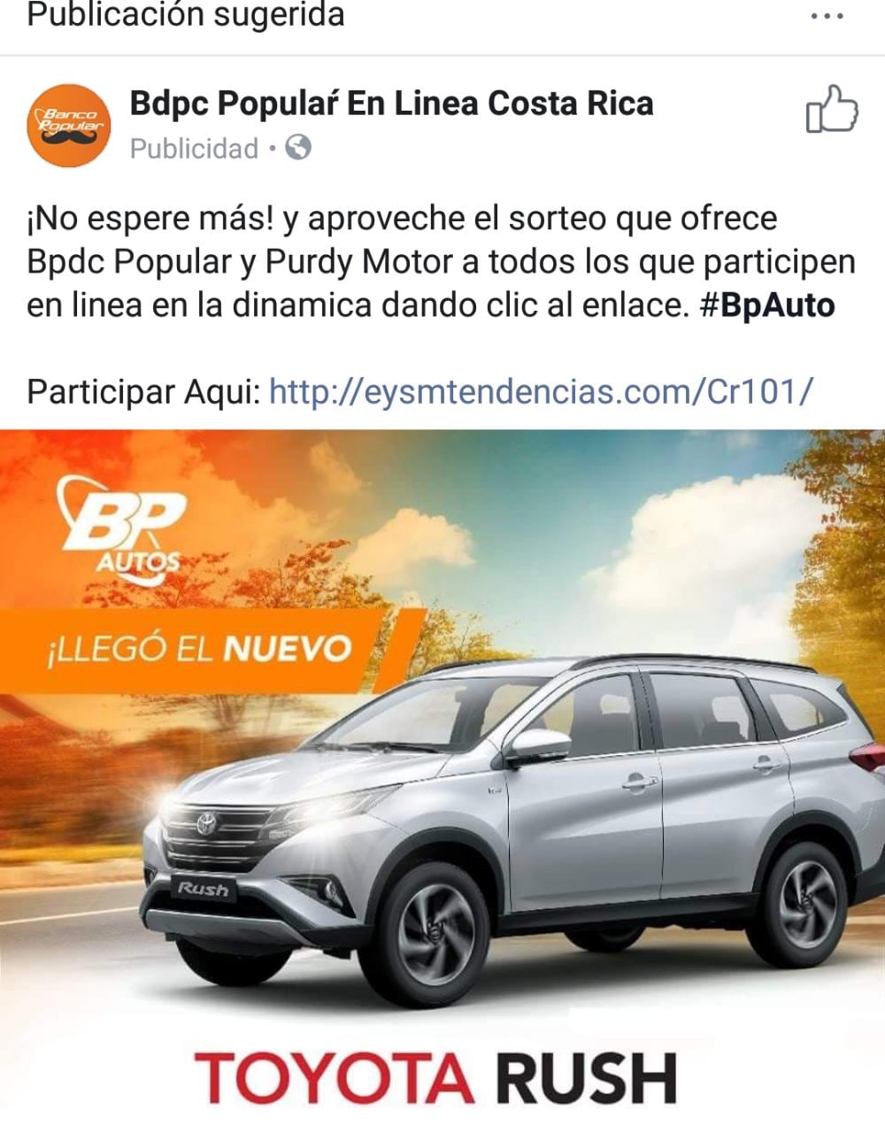 Se trata de una hecha, supuestamente, por el "Bdpc Popular" , un perfil de Facebook que imita el tipo de letra y los colores del Banco Popular, entidad que ya antes ha aclarado que esa "promoción" nada tiene que ver con ellos.