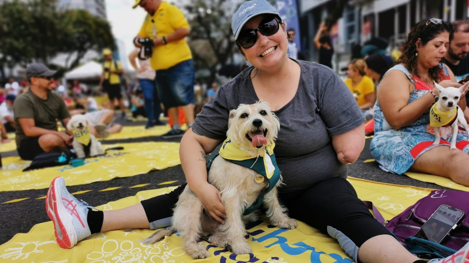 Simba estuvo feliz en el concierto, por ratos se asustaba con tanto perro, pero cuando Ibis le hablaba él se tranquilizaba.