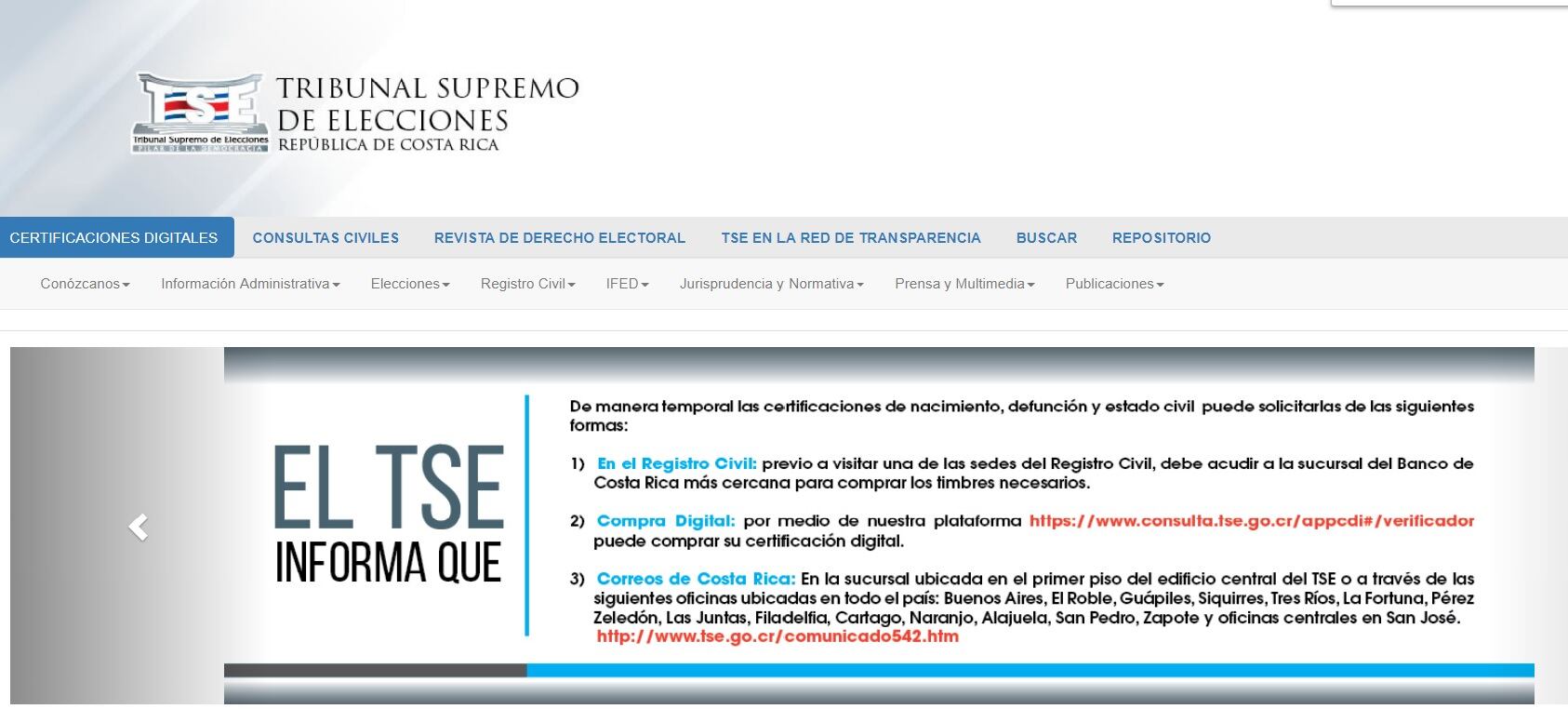 No se le olvide que usted puede solicitar certificaciones de nacimiento, estado civil y defunción por Internet, a través del sitio www.tse.go.cr, durante las 24 horas del día, los 365 días del año, según confirmó el propio Tribunal Supremo de Elecciones.