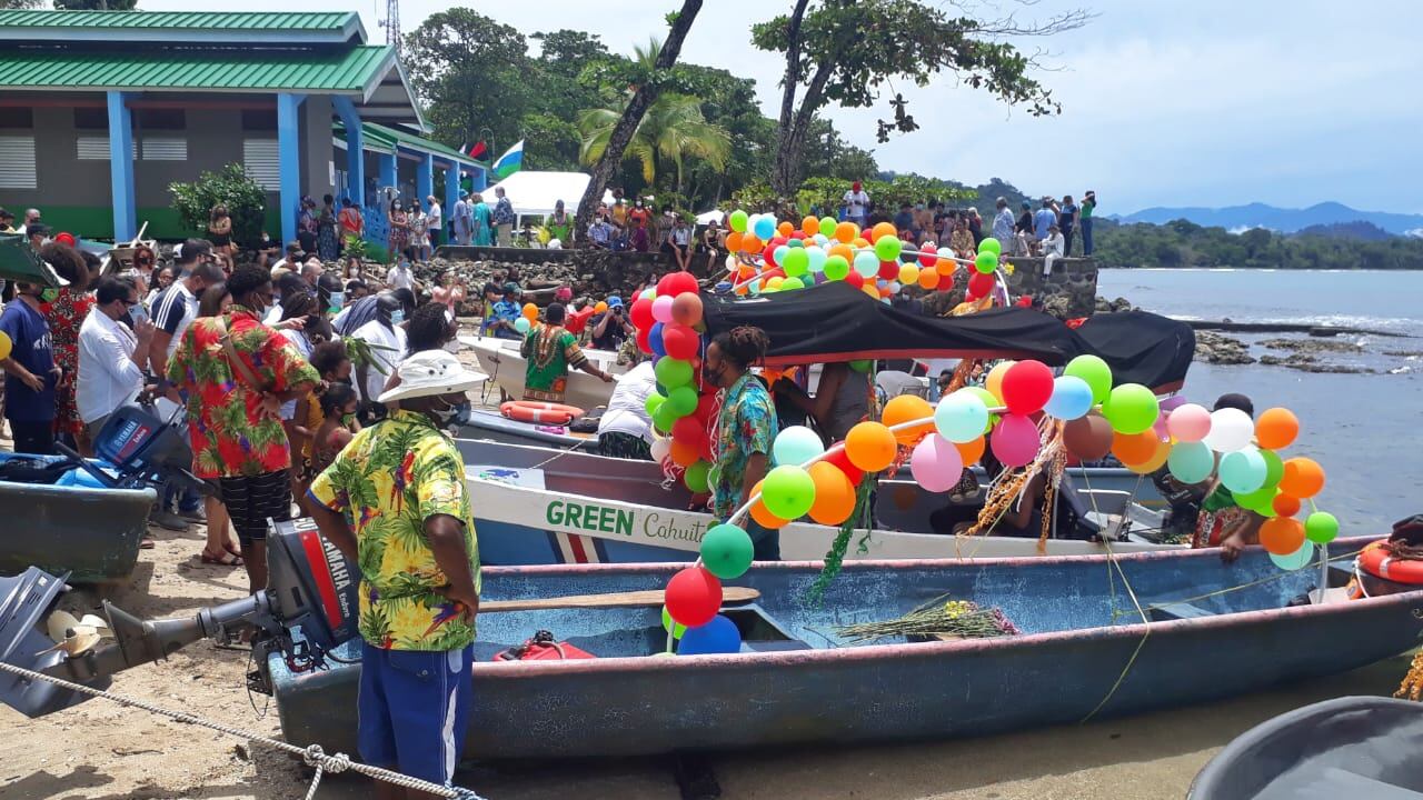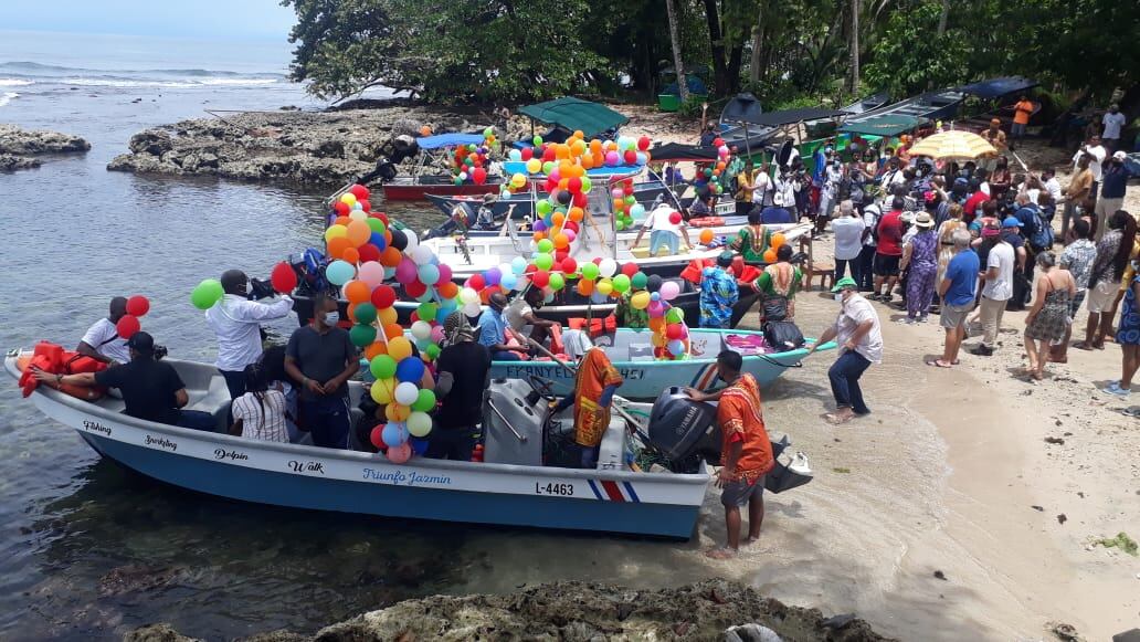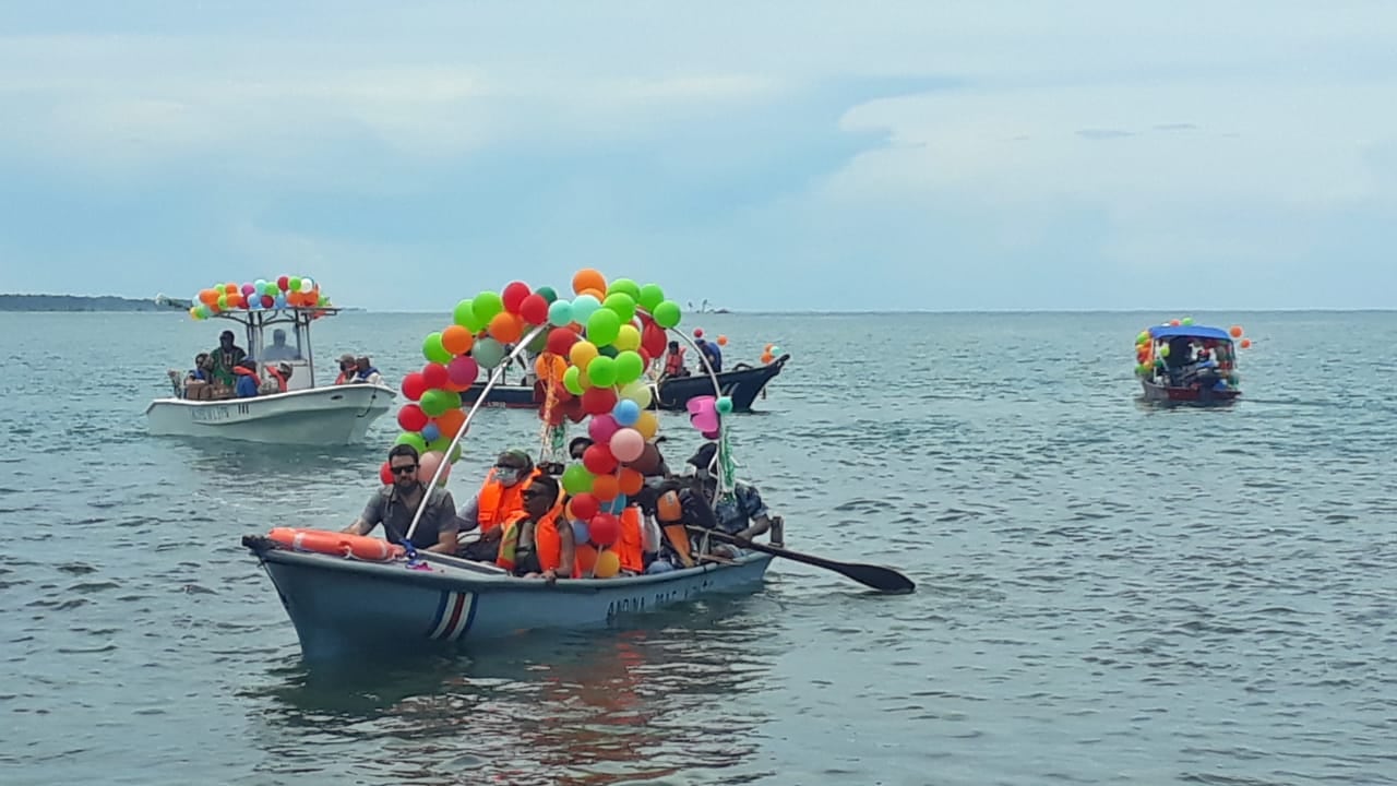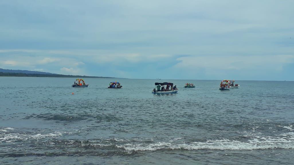 Este sábado, habiendo quedado atrás el coletazo de la onda tropical que descargó lluvia desde la mañana, diez botes adornados con flores y globos de colores, esperaban a las 11 de la mañana para viajar hasta el sitio en el mar donde ocurrieron los naufragios.