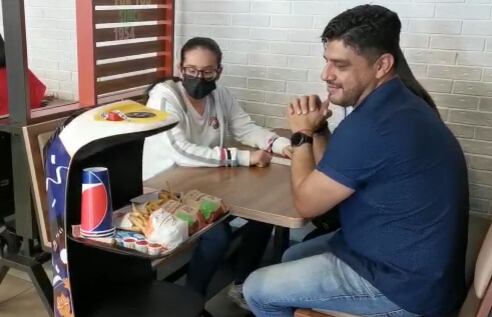 César Abarca llegó este martes al mediodía al Burger King de San Pedro a comerse una hamburguesa con su esposa y su hija y se sorprendieron al ver al robot.