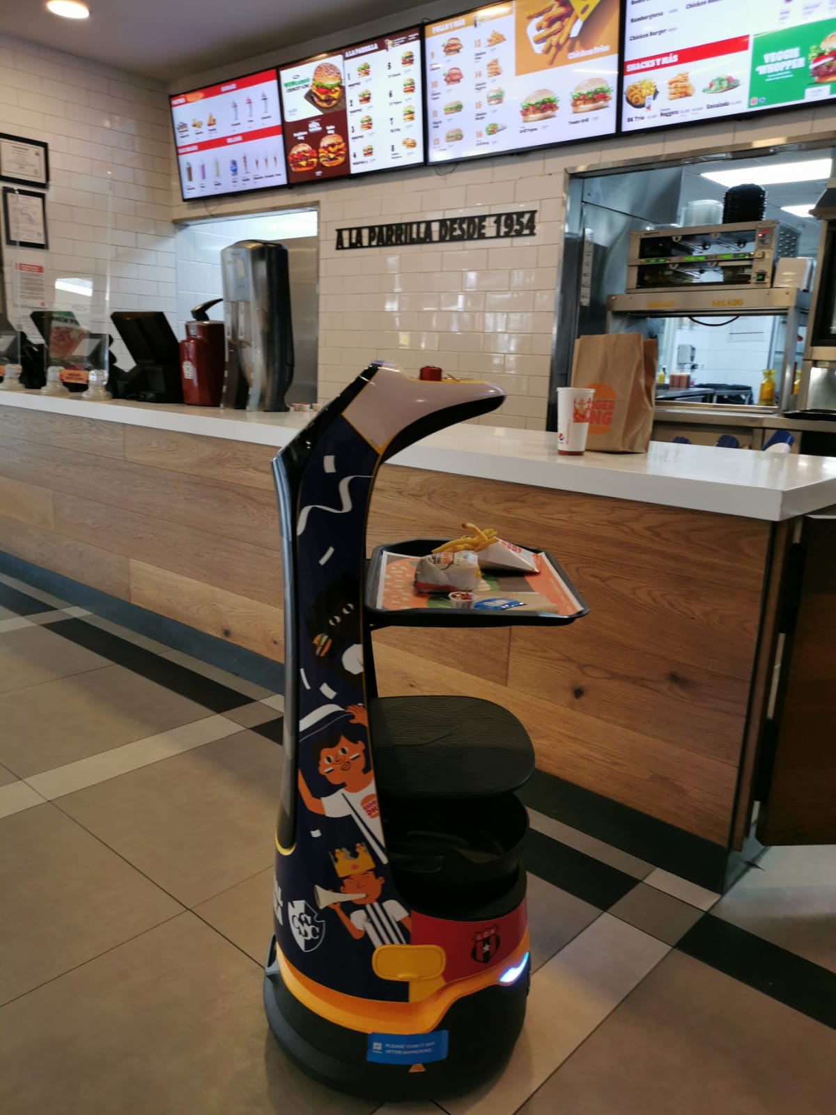 Los bautizaron Whopper 3000 y es el encargado de llevar a la mesa los pedidos.