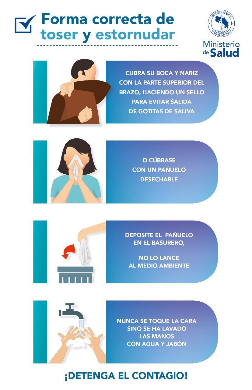 Por su parte de ministro de Salud tico, Daniel Salas, reiteró la necesidad de tomar medidas de precaución como lavarse las manos frecuentemente con agua y jabón, especialmente antes de tocarse la cara cuando se ha estado en lugares públicos.