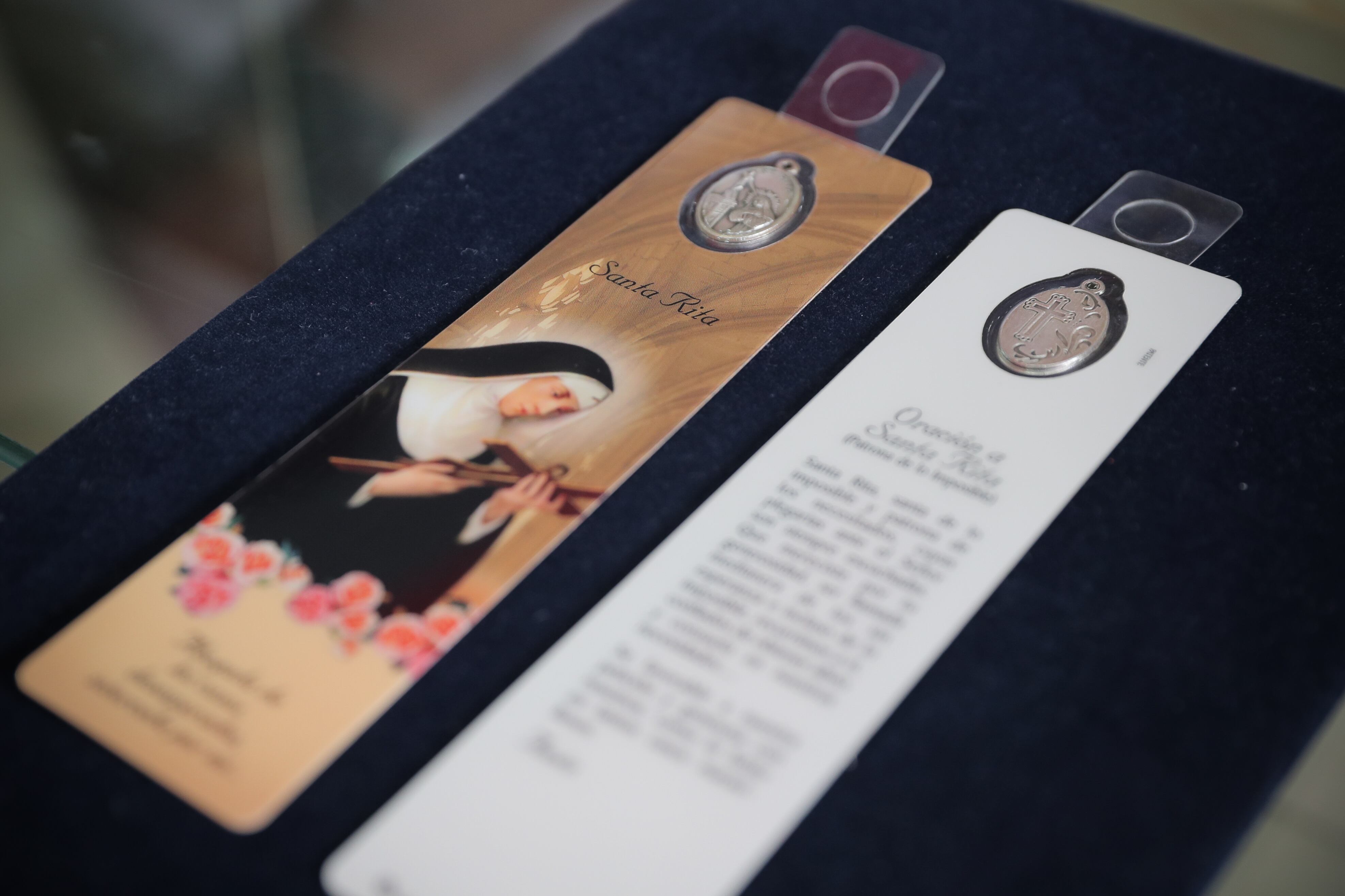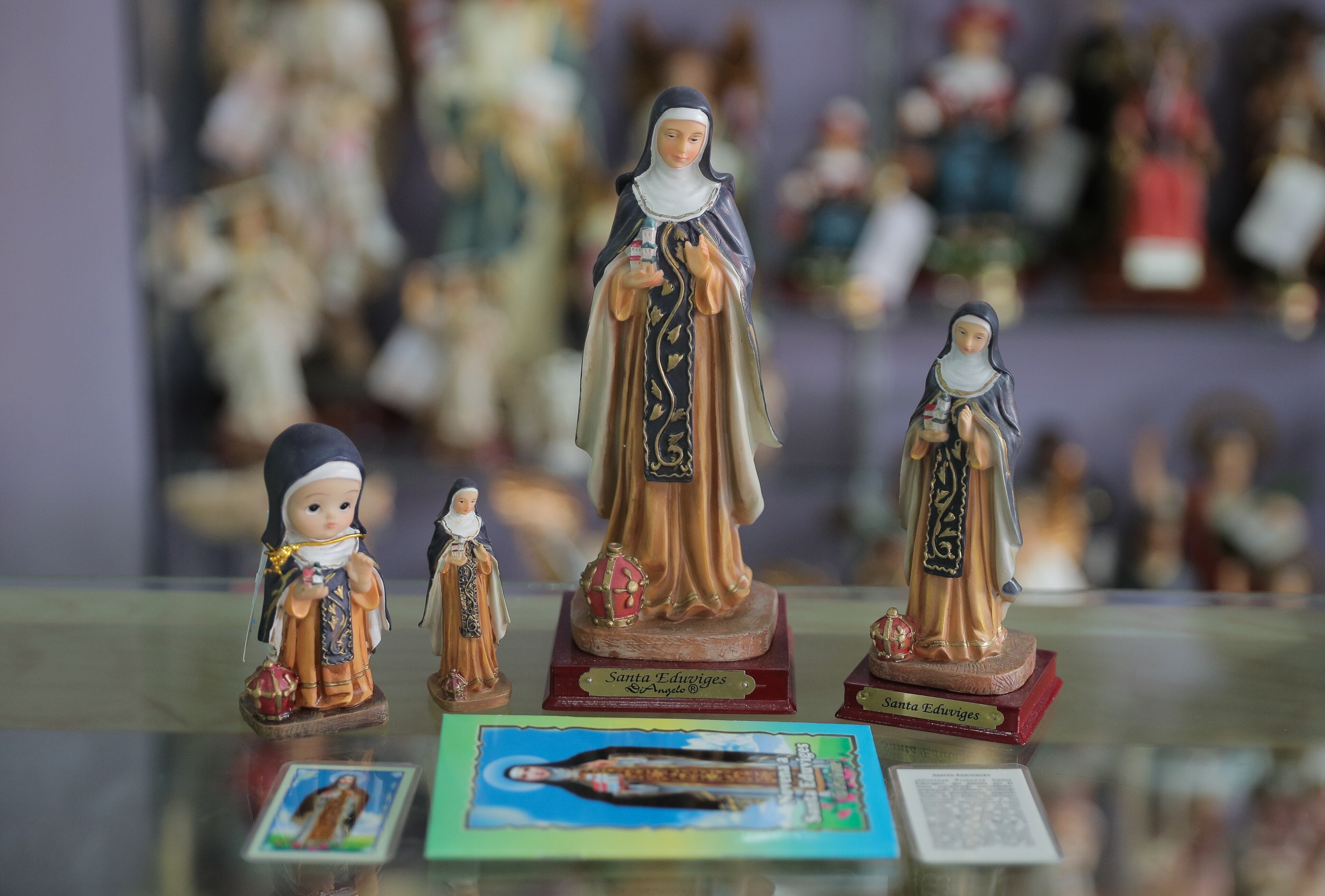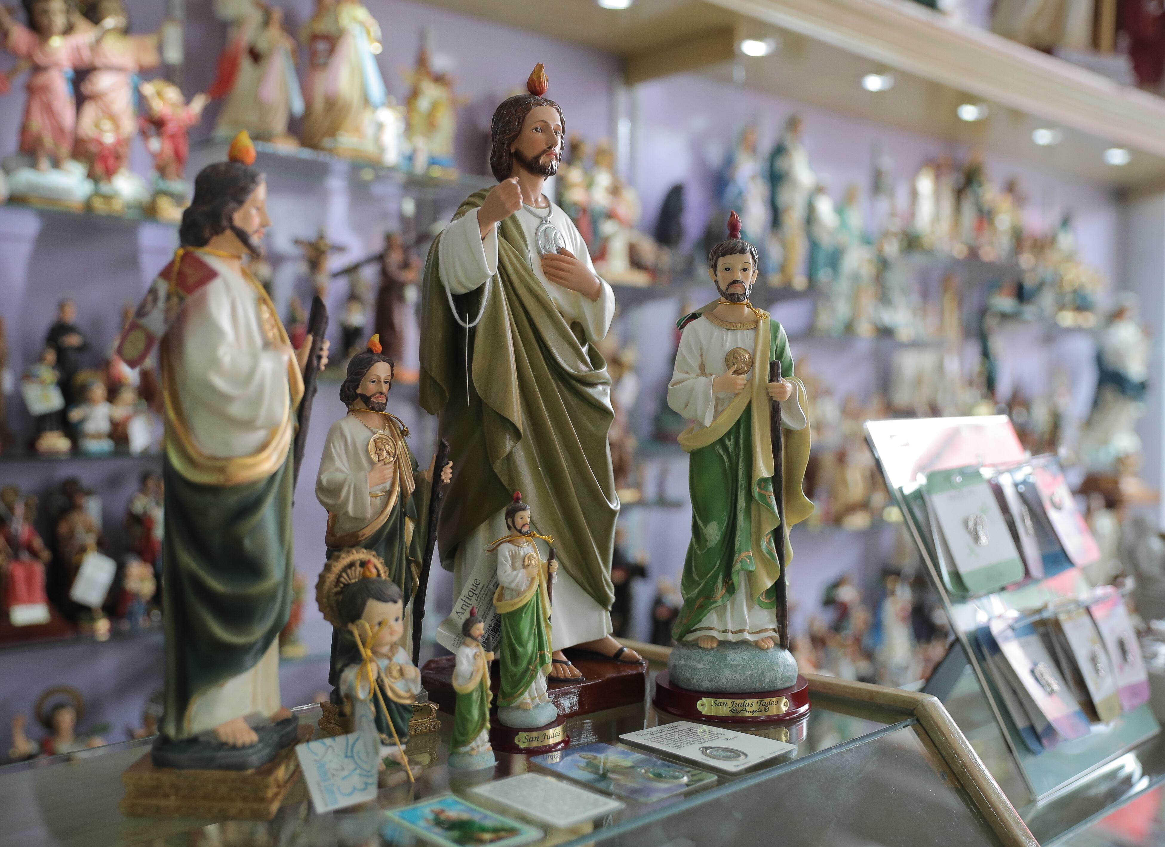 Como es el santo de moda, la gente busca muchos artículos para lograr su protección. De ahí que puedan encontrarse colgantes para colocar en la parte de atrás de la puerta, medallas de distintos tamaños, pulseras, estampitas, separadores de libros y novenas. También hay muchos libros que cuentan su historia y hasta que le permiten orar cinco minutos diarios durante todo el año.