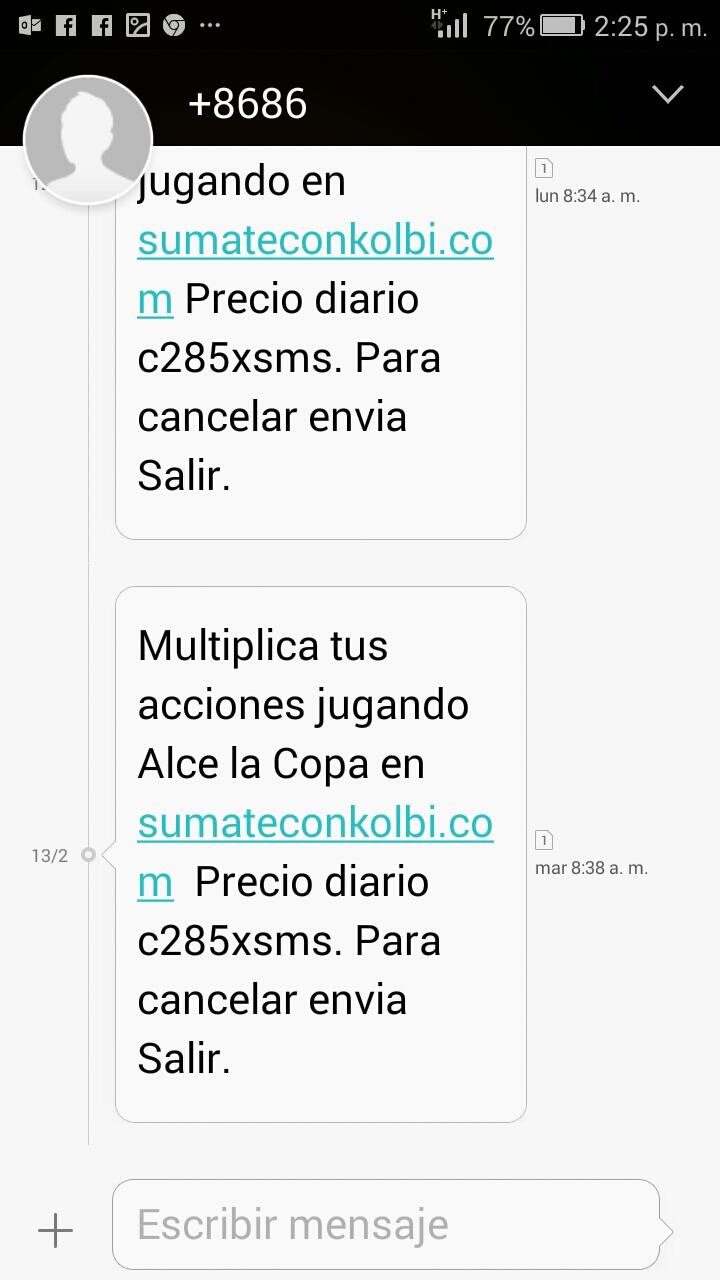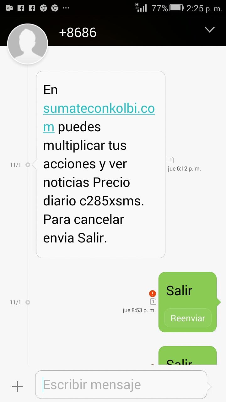 "El primer mensaje me llegó el 11 de enero y yo lo ignoré; sin embargo, al rato me llegó otro que decía que ya estaba participando en una promoción y que costaba 285 colones, además, que si quería salirme que enviara a tal número un mensaje con la palabra SALIR, lo hice y nunca se iba y también me imagino que me cobraban eso", comentó Cruz.