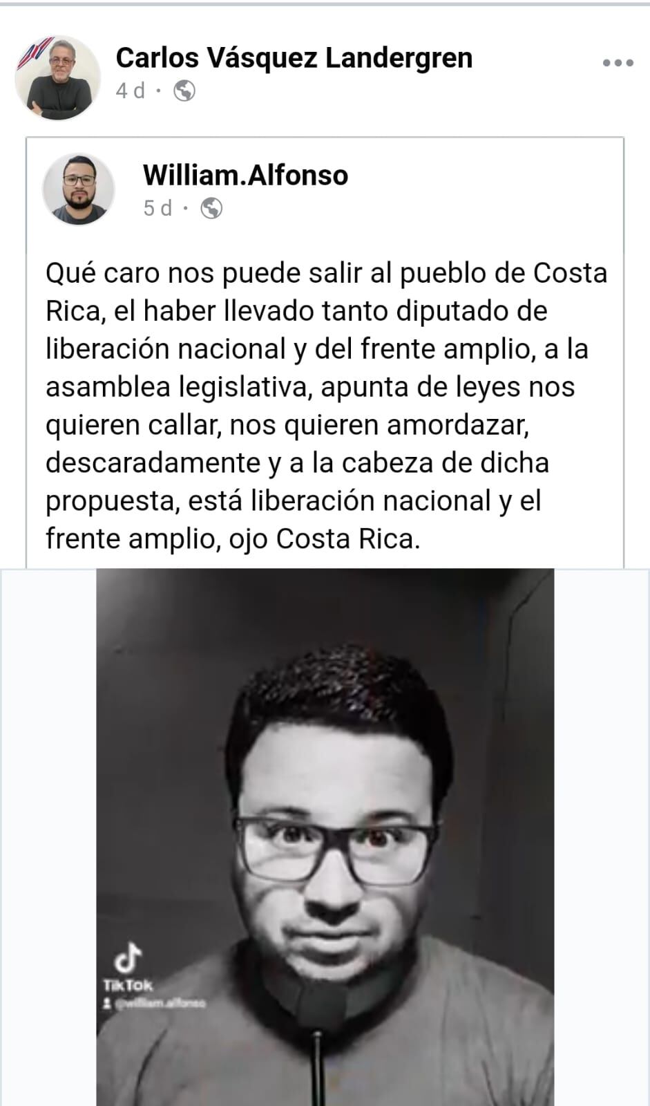 También los diputados Ariel Robles, del Frente Amplio, y Dinorah Barquero, de Liberación Nacional, le reclamaron a Vargas sus faltas de respeto en redes sociales.