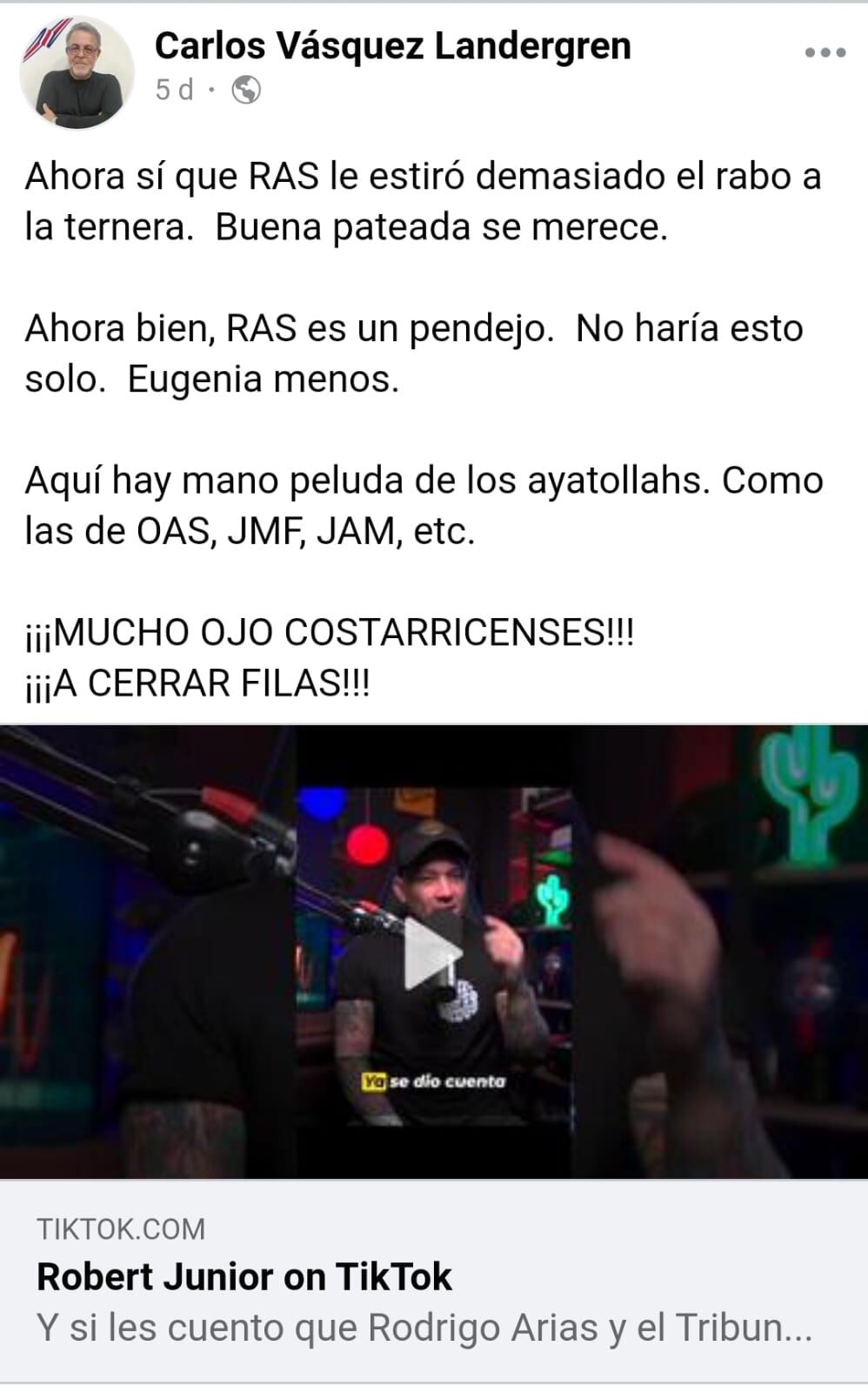 A su llegada a la comparecencia, Vargas dijo que él renunció al movimiento Costa Rica Próspera el 14 de junio del 2021, por lo que asegura que no tuvo nada que ver con los pagos de banderas y planillas que reveló el Tribunal Supremo de Elecciones (TSE).