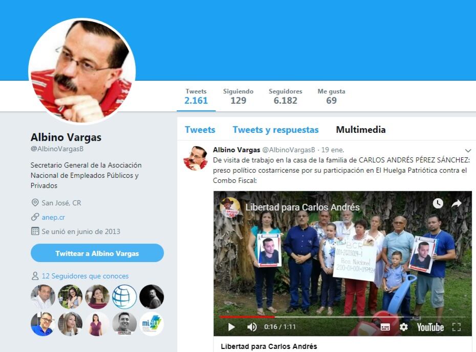 Albino visitó a Carlos Andrés a la cárcel el pasado 24 de diciembre y dijo que lo hacía por solidaridad, mientras que en Twitter posteó que era un preso político. “Se le hizo un juicio sumarísimo, injusto, políticamente de venganza por parte del régimen de Alvarado. Libérenlo”, escribió Vargas.