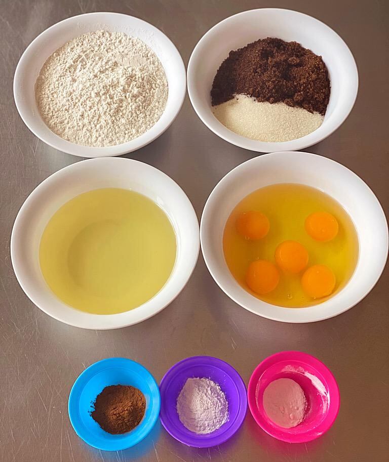Colocar en un tazón los ingredientes secos ya cernidos, mezcle muy bien, luego agregue los líquidos y termine de mezclar muy bien.