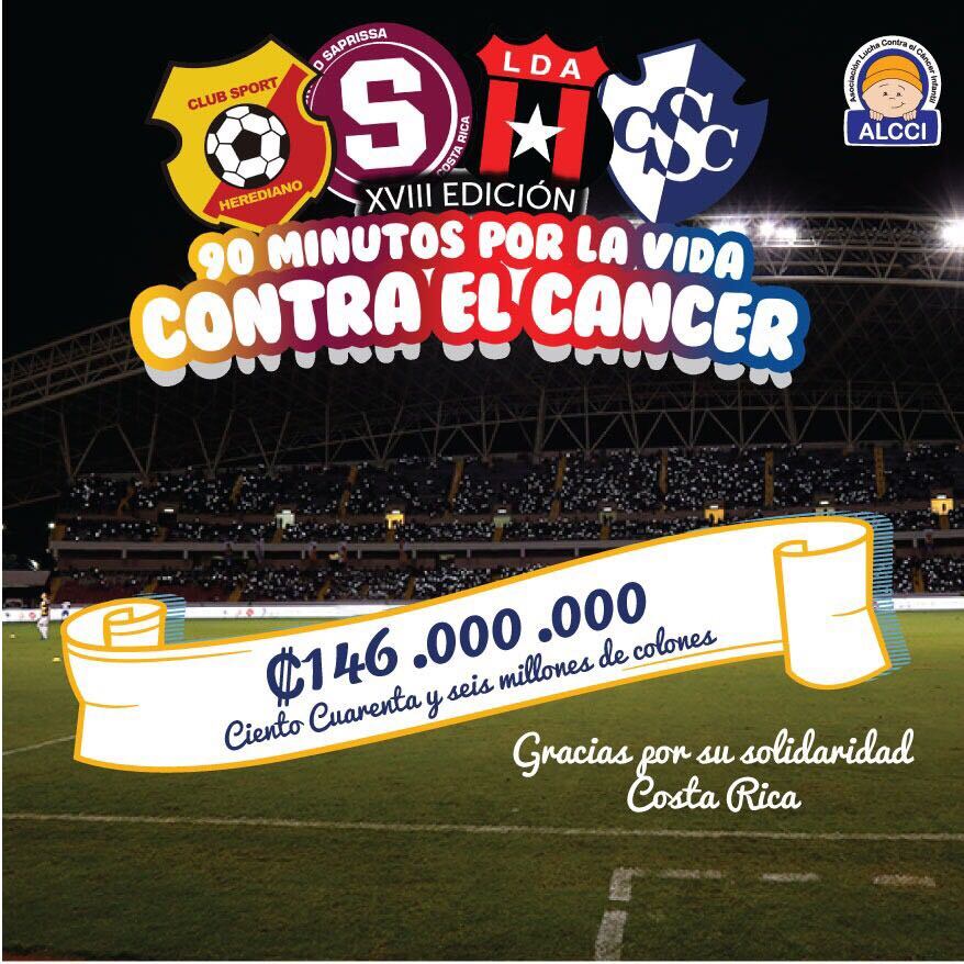 La Asociación Lucha contra el Cáncer Infantil anunció este miércoles que logró recaudar ¢146 millones para los niños durante la actividad 90 Minutos por la Vida 2018.