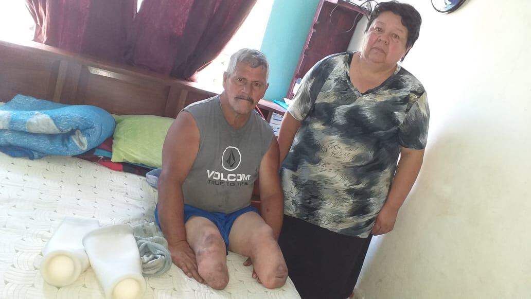 A su esposo le amputaron ambas piernas hace 32 años cuando lo atropelló un tren y actualmente presenta problemas mentales, por lo que la señora debe estar más al pendiente de él y no puede salir a trabajar.