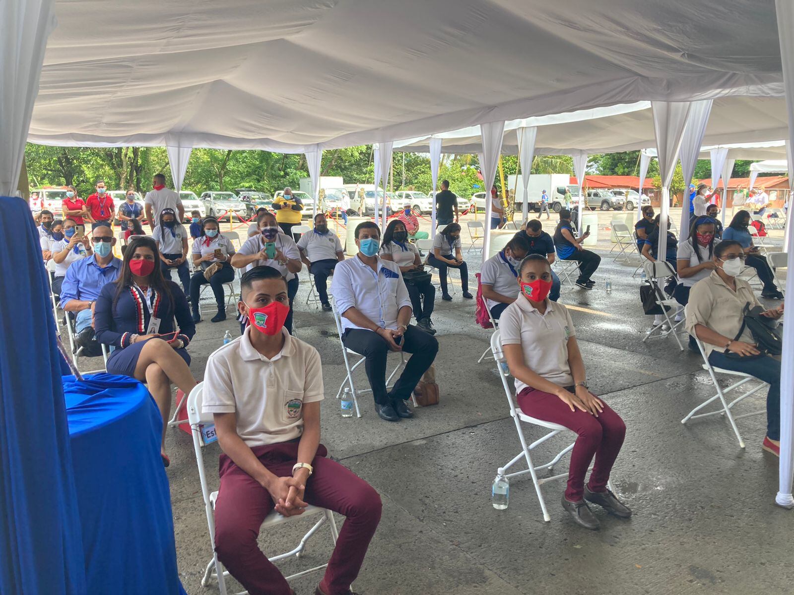 La joven recibió la tea de manos de la ministra de Educación, Giselle Cruz, junto a los estudiantes, también sobresalientes, Gerald Julián Rosales Rodríguez, de quinto año y José Luis González Avilés, de noveno. Fue en el puesto fronterizo de Peñas Blancas, en un pequeño acto protocolario con poquita gente por la pandemia.