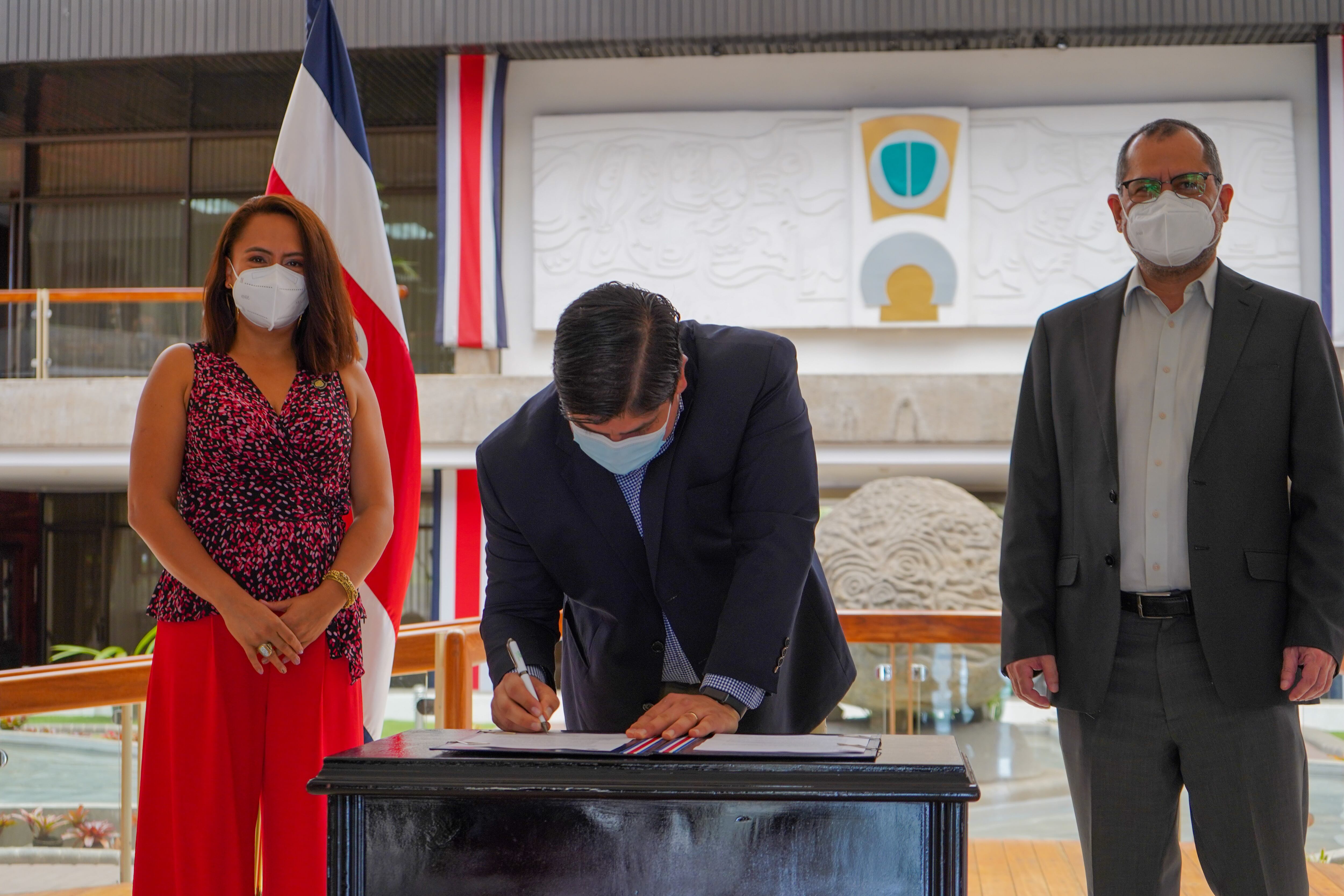 El veto parcial también fue firmado por la ministra de la Presidencia, Geannina Dinarte, y el ministro de Comunicación, Agustín Castro.