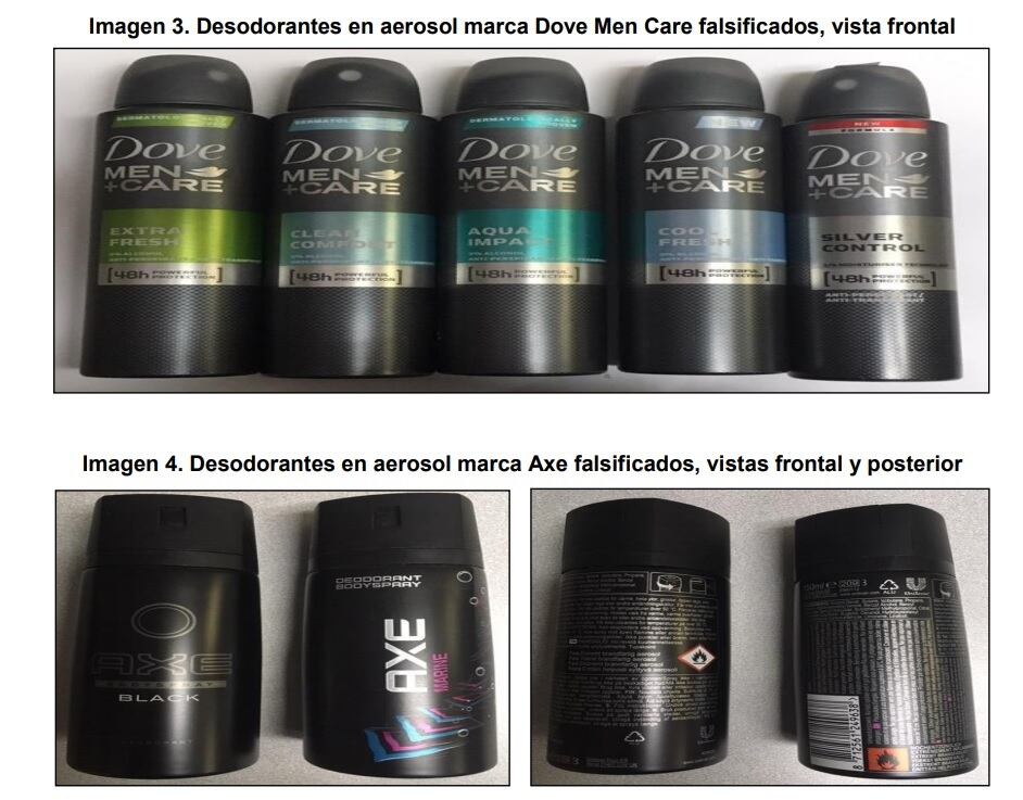 El ministerio de Salud alerta a la población sobre la presencia de desodorantes falsificados de la marca Dove, Rexona, Lux y Axe que se están vendiendo en el mercado nacional.