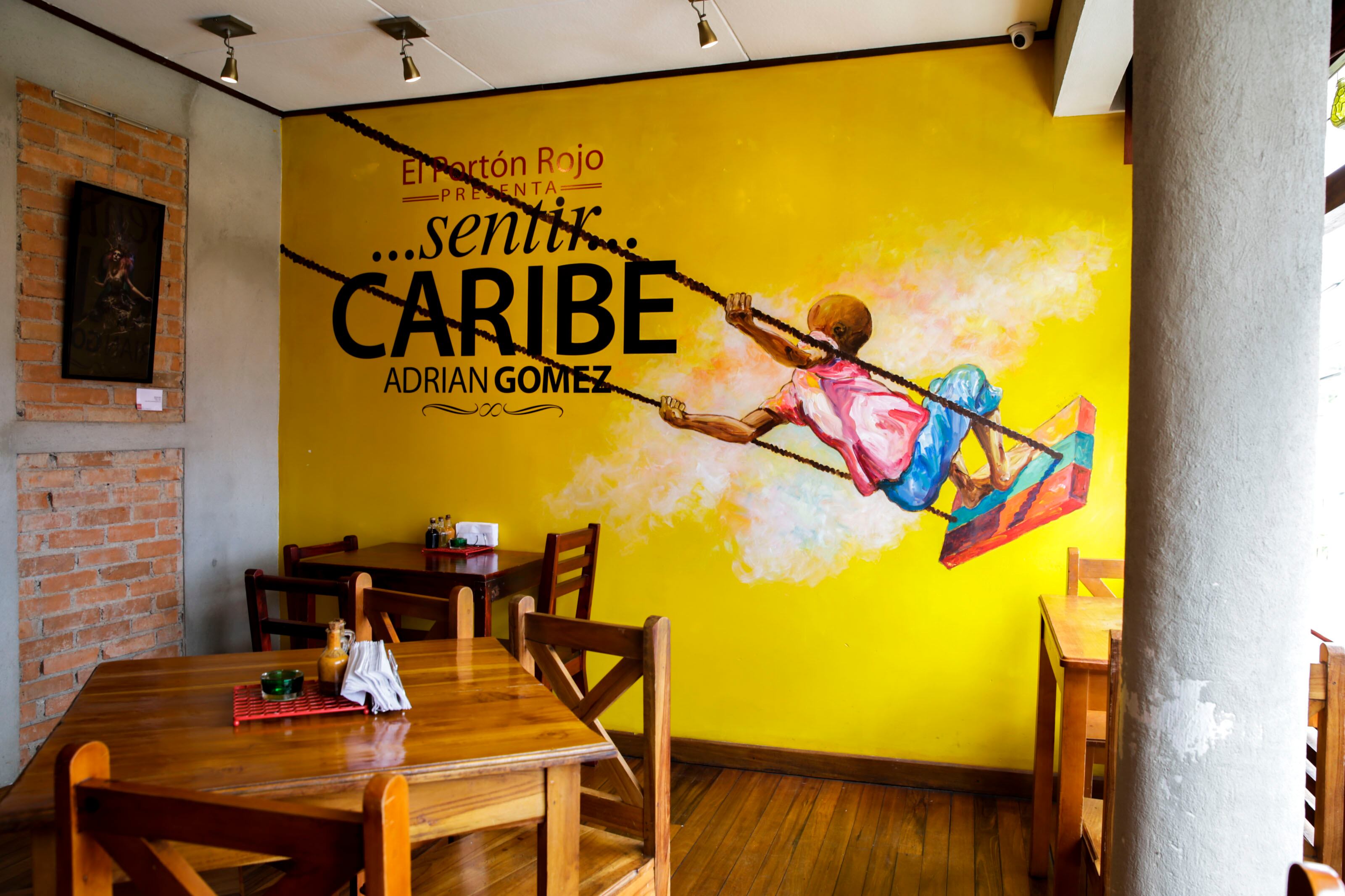 Gómez es conocido por sus pinturas de niños y adultos negros y paisajes de nuestro Caribe, por lo que los dueños del restaurante querían darle un toque especial a la exposición para que, además de las paredes, también el menú tuviera su toque caribeño.