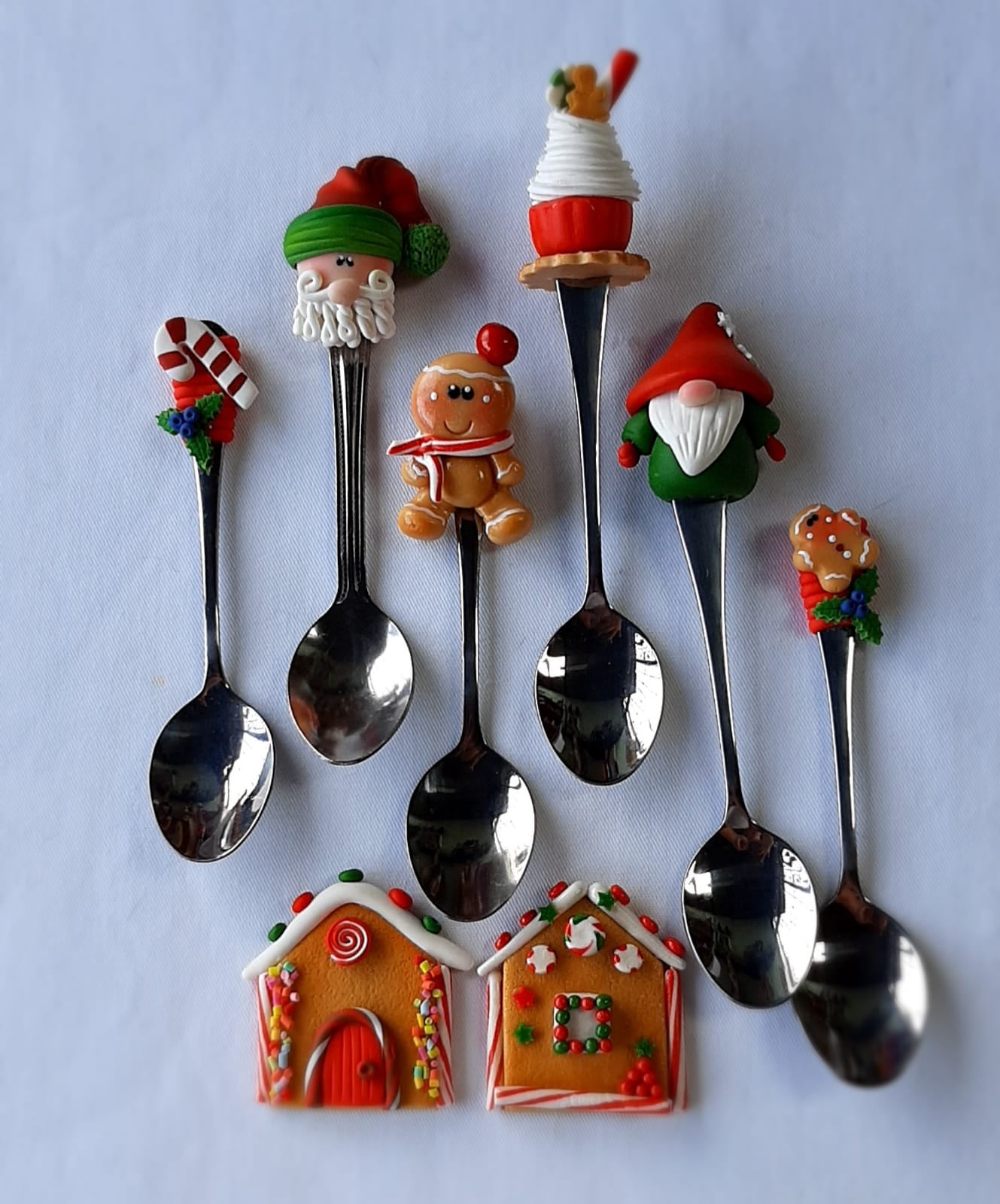 Ella hace frascos y cucharas decorados, jarras, entre otros.