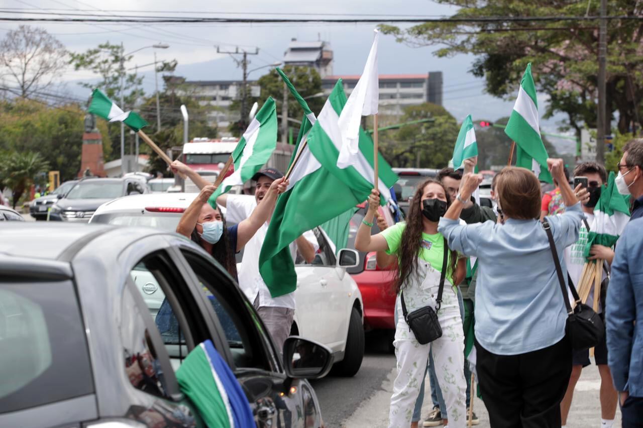 “¡Rodrigo acosador!”, fue la consigna que gritaron durante algunos segundos hasta que se acercó un miembro del partido de Chaves para hacer un llamado al respeto, por lo que cambiaron los gritos por “¡Figueres, Figueres!”.