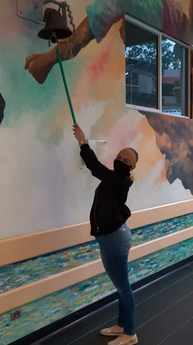 “En el hospital México hay una campana que se toca cuando uno vence el cáncer, así que cuando iba a las sesiones de quimio escuchaba a la gente tocar esa campana y cada vez que la oía me estremecía y me decía: ‘yo algún día la voy a tocar’. Así fue”, dijo orgullosa.