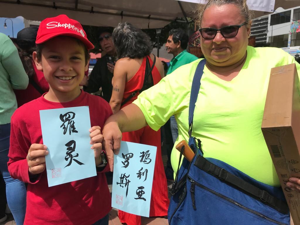 “Nos gusta mucho venir a estas actividades, hemos asistido en varias oportunidades. Nunca pensé que mi nombre fuera tan largo y se viera tan bonito escrito en mandarín”, dijo Marielos Solís, quien asistió con su hijo Norlyng.