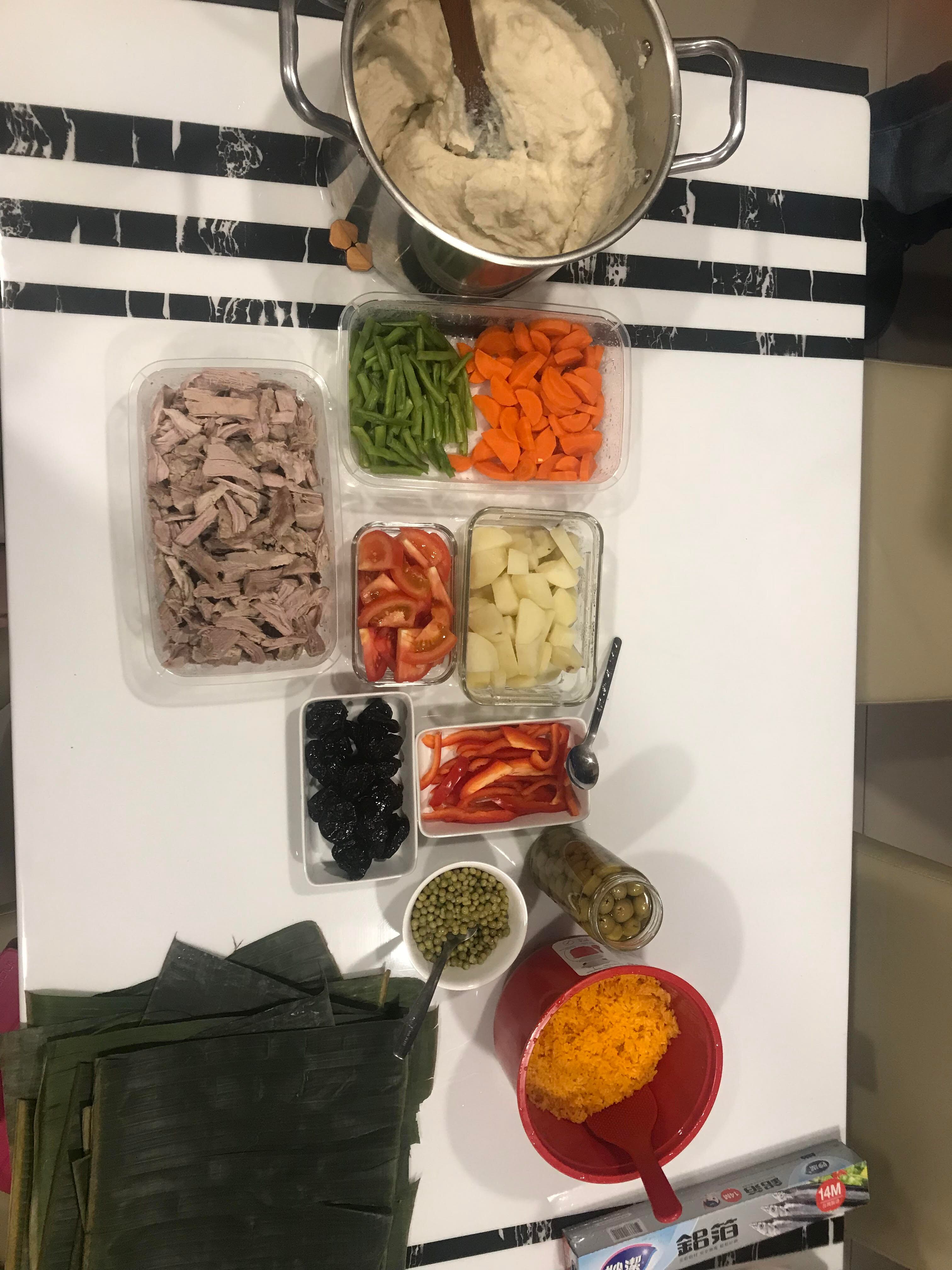 De hecho, este año es la tercera vez que Majo hace tamales en Taiwán, pero este año quiso envolverlos en hojas de plátano, porque anteriormente solo los hacía en aluminio.