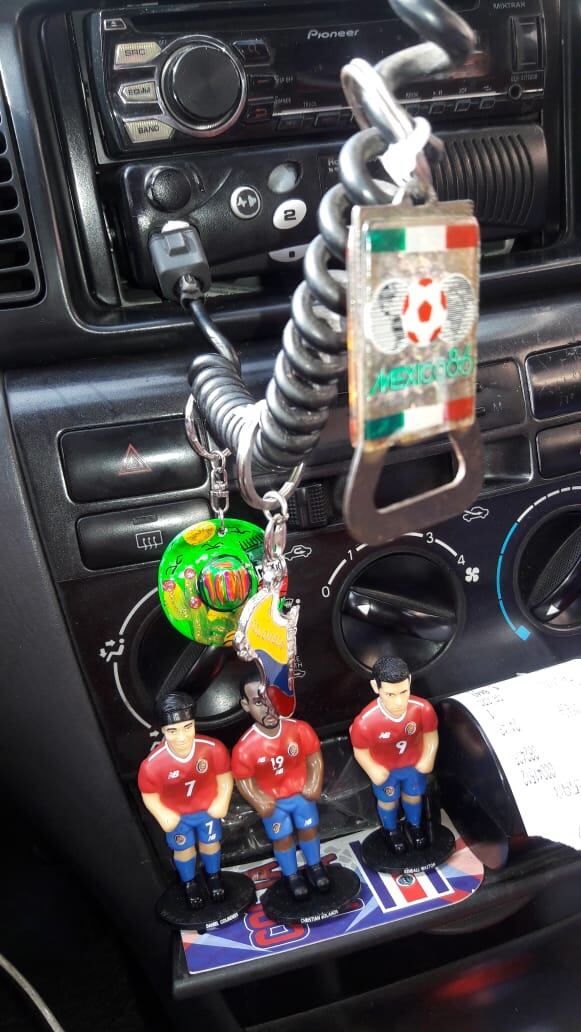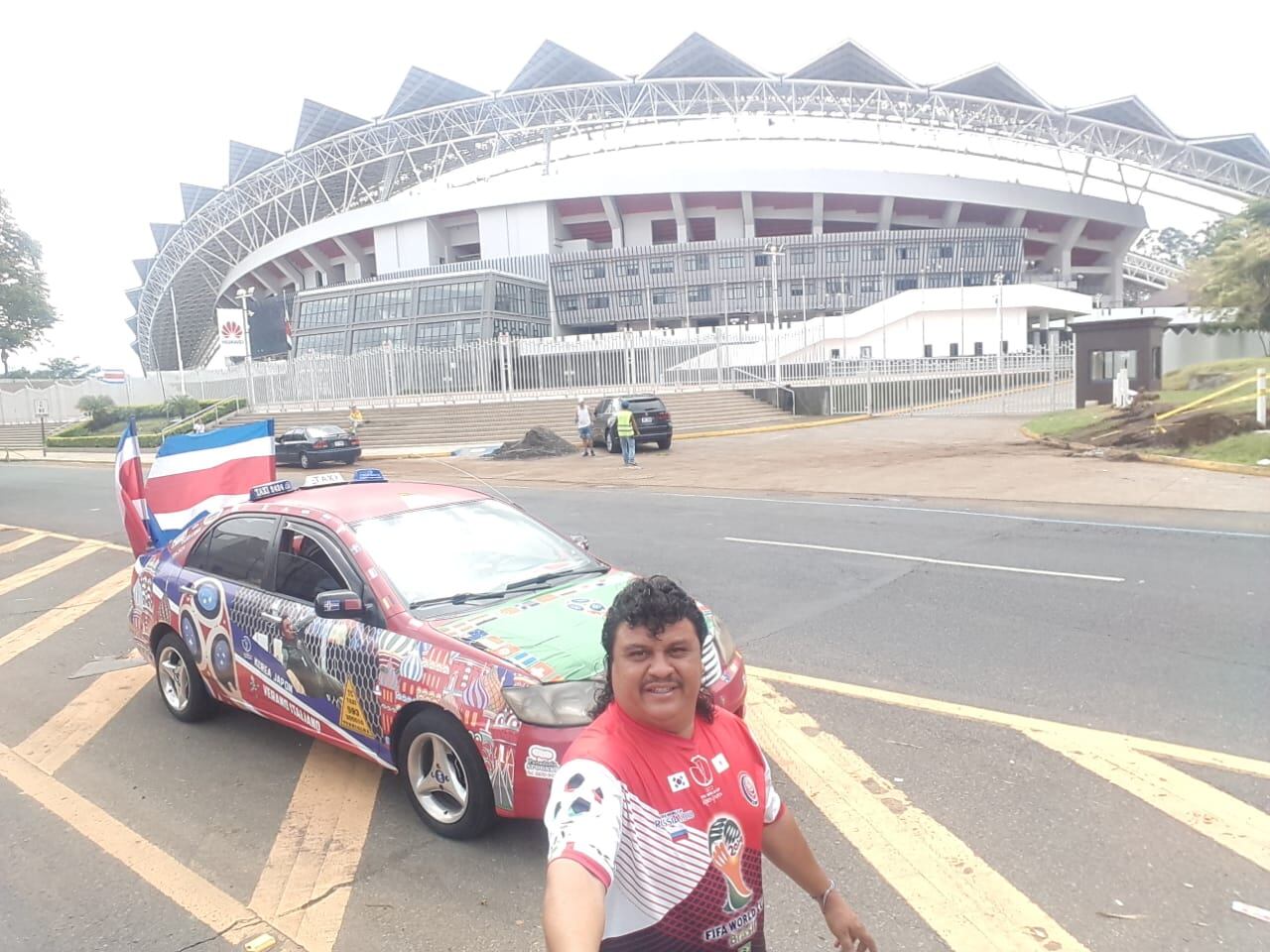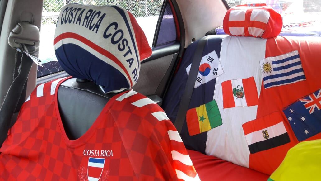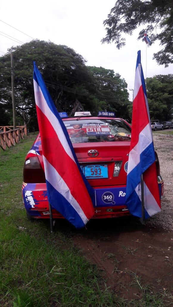 Don Melvin Fonseca tiene el taxi más popular de Turrialba, ya que desde el Mundial de Alemania, en el 2006, se le ocurrió decorarlo con todo aquello relacionado a la justa futbolística.
