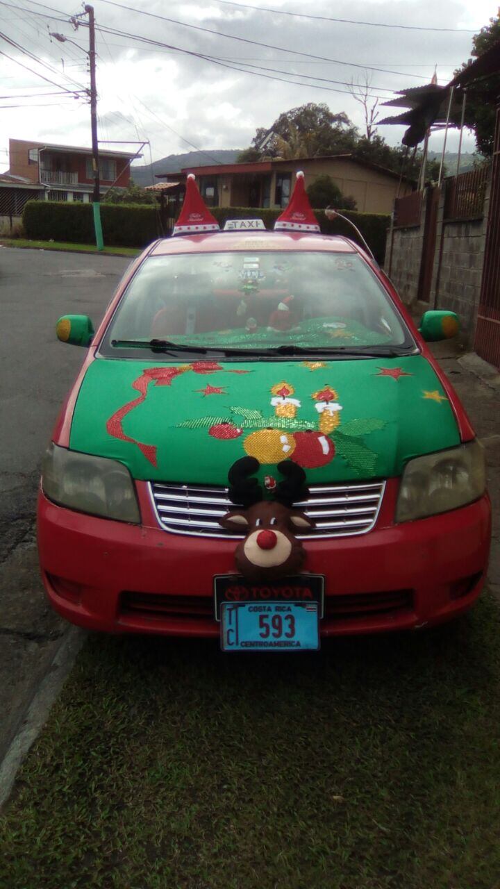 Para diciembre bota la casa por la ventana, ya que además de las calcomanías, le pone otros accesorios como gorritos, los forros de los asientos, las alfombras, muñequitos, renos y hasta juegos de luces. El hombre deja tan lindo el chuzo rojo, que el alcalde de Turrialba, Luis Fernando León, lo invitó el año pasado a desfilar en el Festival de la Luz que organiza el cantón.