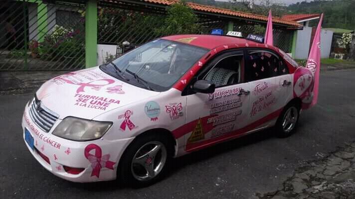 Debido a su pasión por los decorados temáticos, Catalina Castro, organizadora de la Caminata Contra el cáncer de Mama en Turrialba, lo contactó y le propuso que su taxi llevara un mensaje de prevención contra esta enfermedad a todos los lugares por los que se moviliza consiguiendo la platica para el arroz y los frijoles. Por supuesto que a don Melvin le sonó la idea y puso manos a la obra.